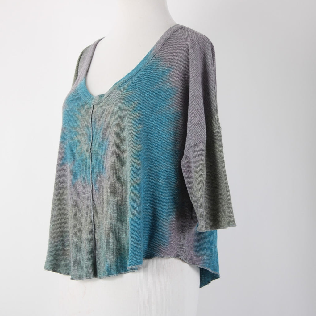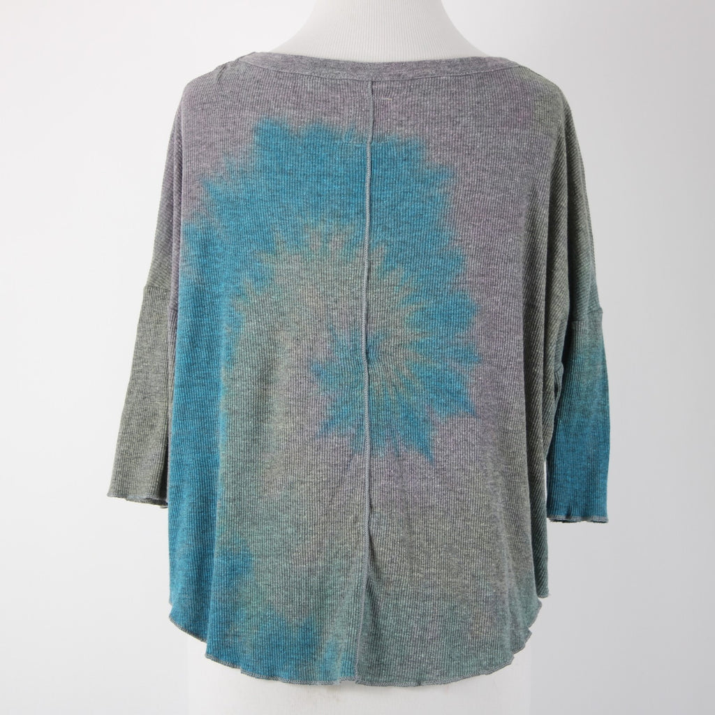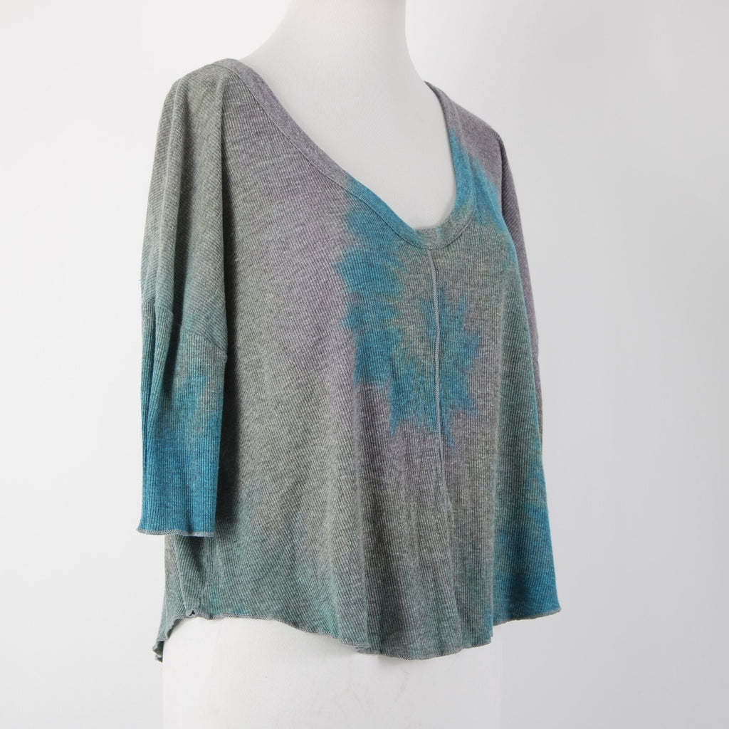Chaser Sz S Gray Blue Purple V Neck Crop Tie Dye 3/4 Sleeve Polyester Cotton Top