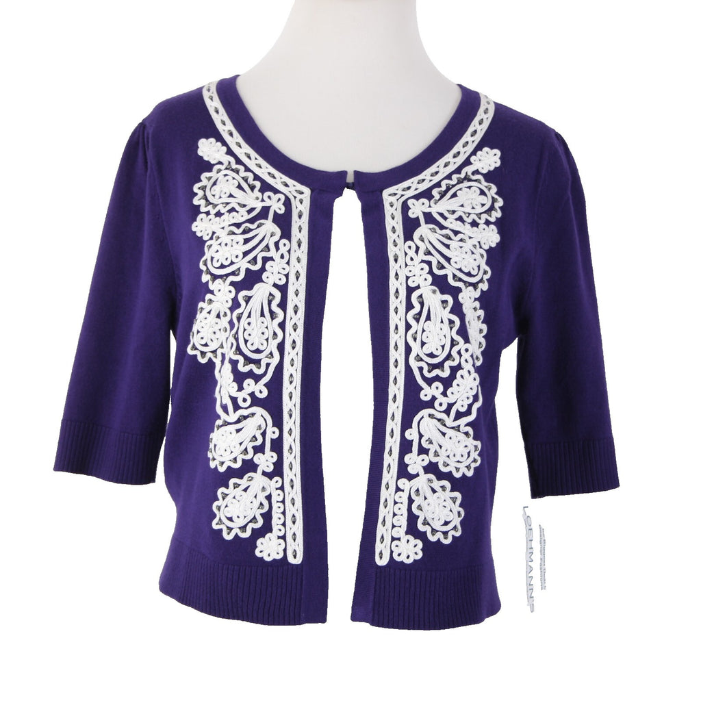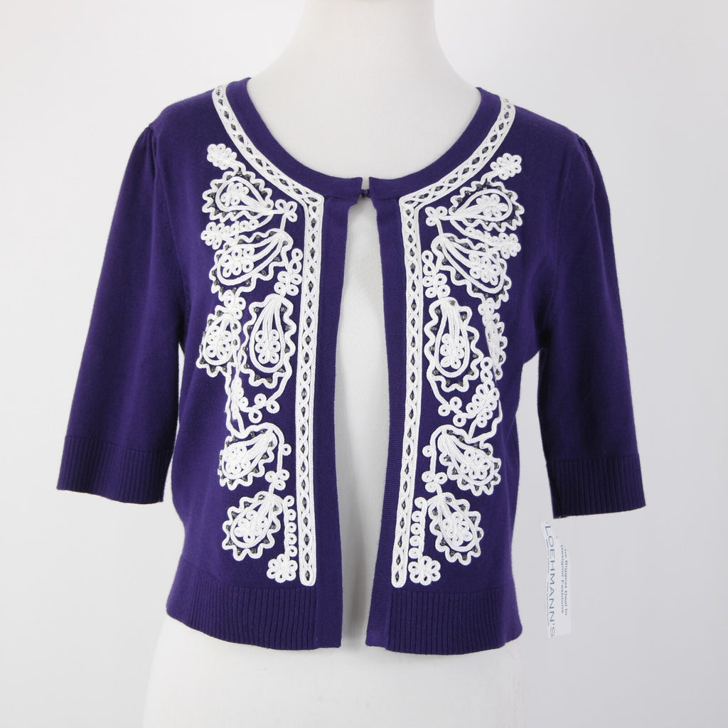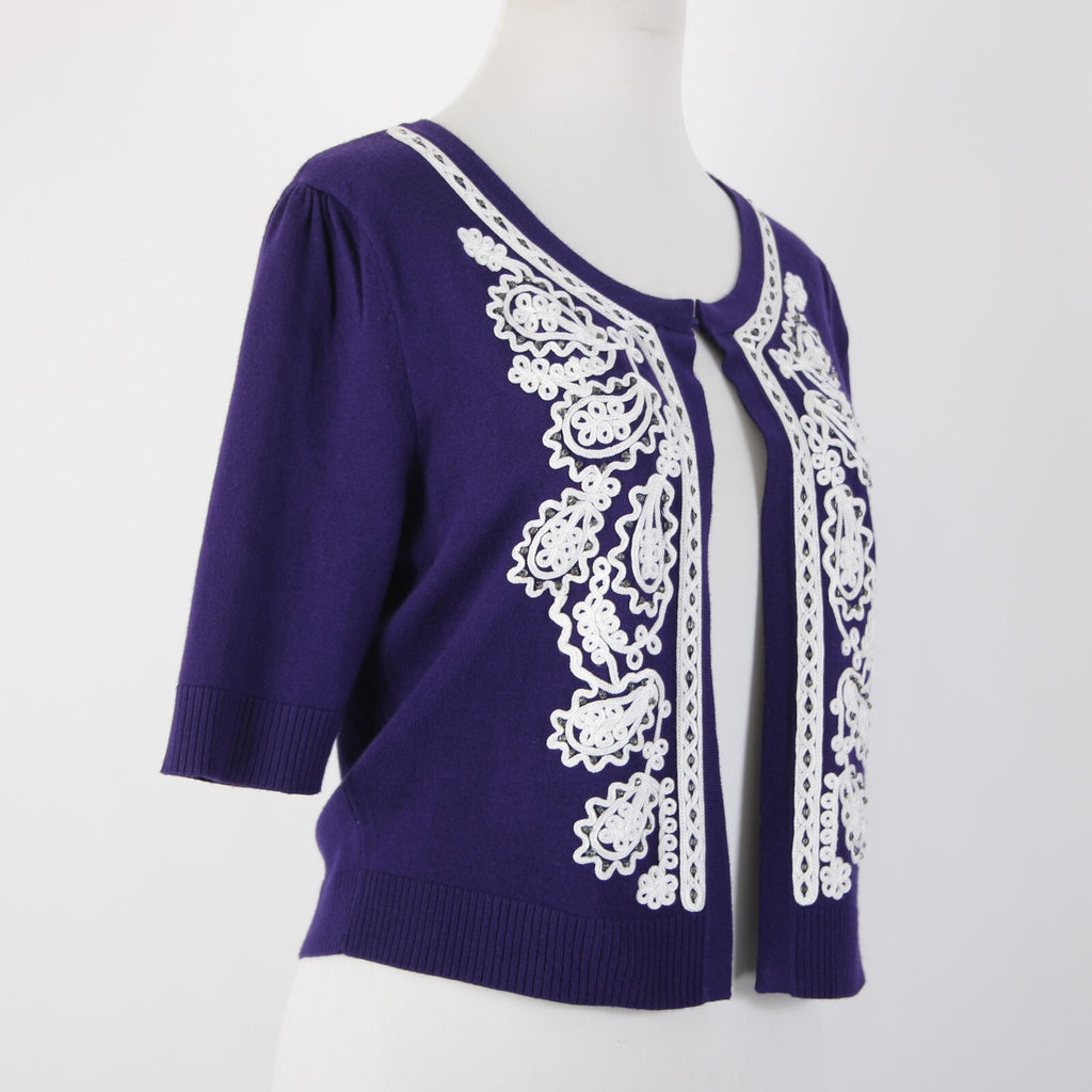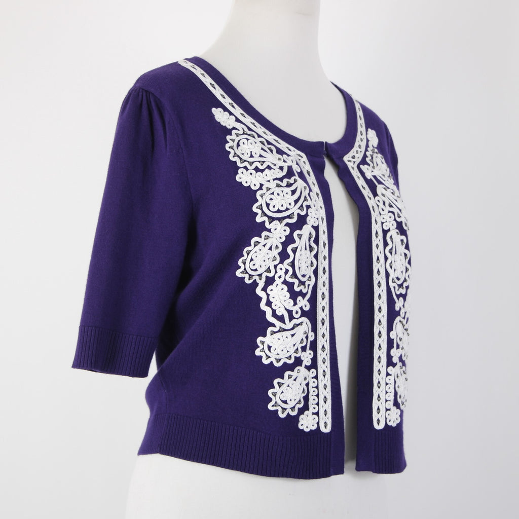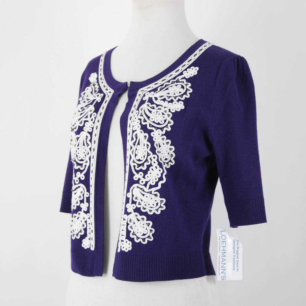 Chelsea Theodore NEW $35 Sz S Purple White Beaded Embrodiered Rayon Cardigan