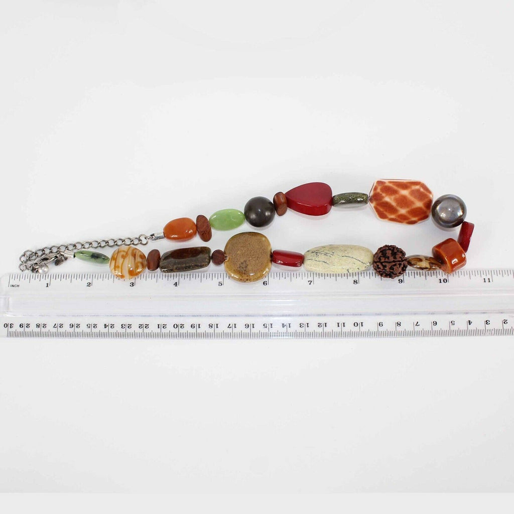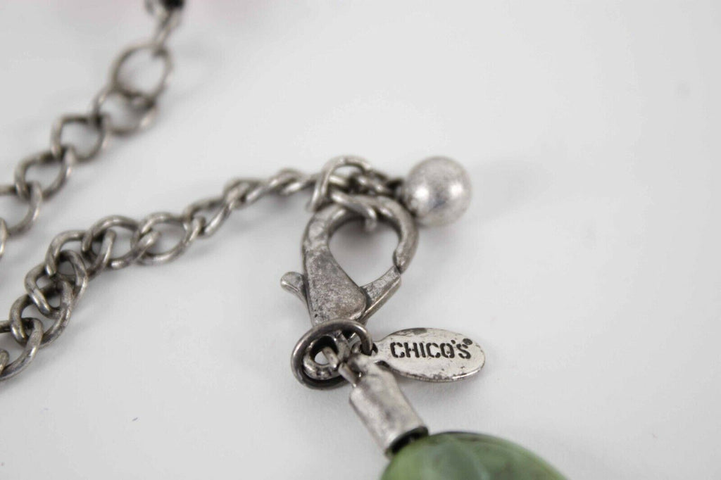 Chicos 18in + 4in Silvertone Chain Brown Multi Faux Stone Chunky Necklace
