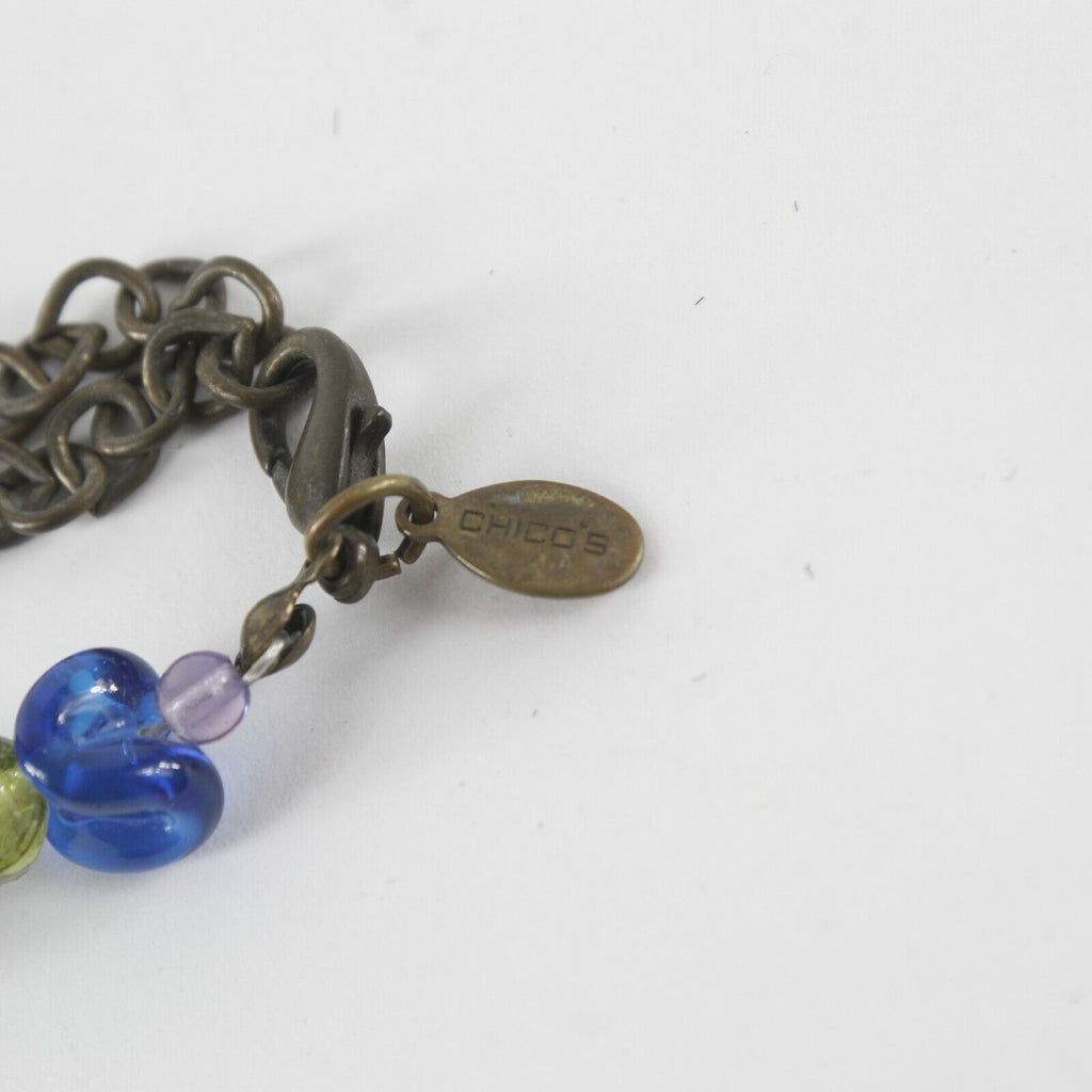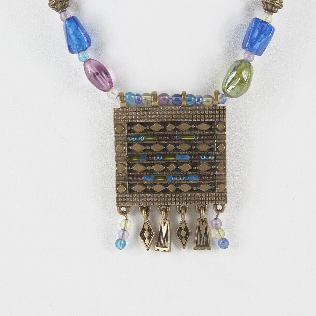 Chicos 19" Goldtone Brass Square Pendant Multi Bright Beads Necklace