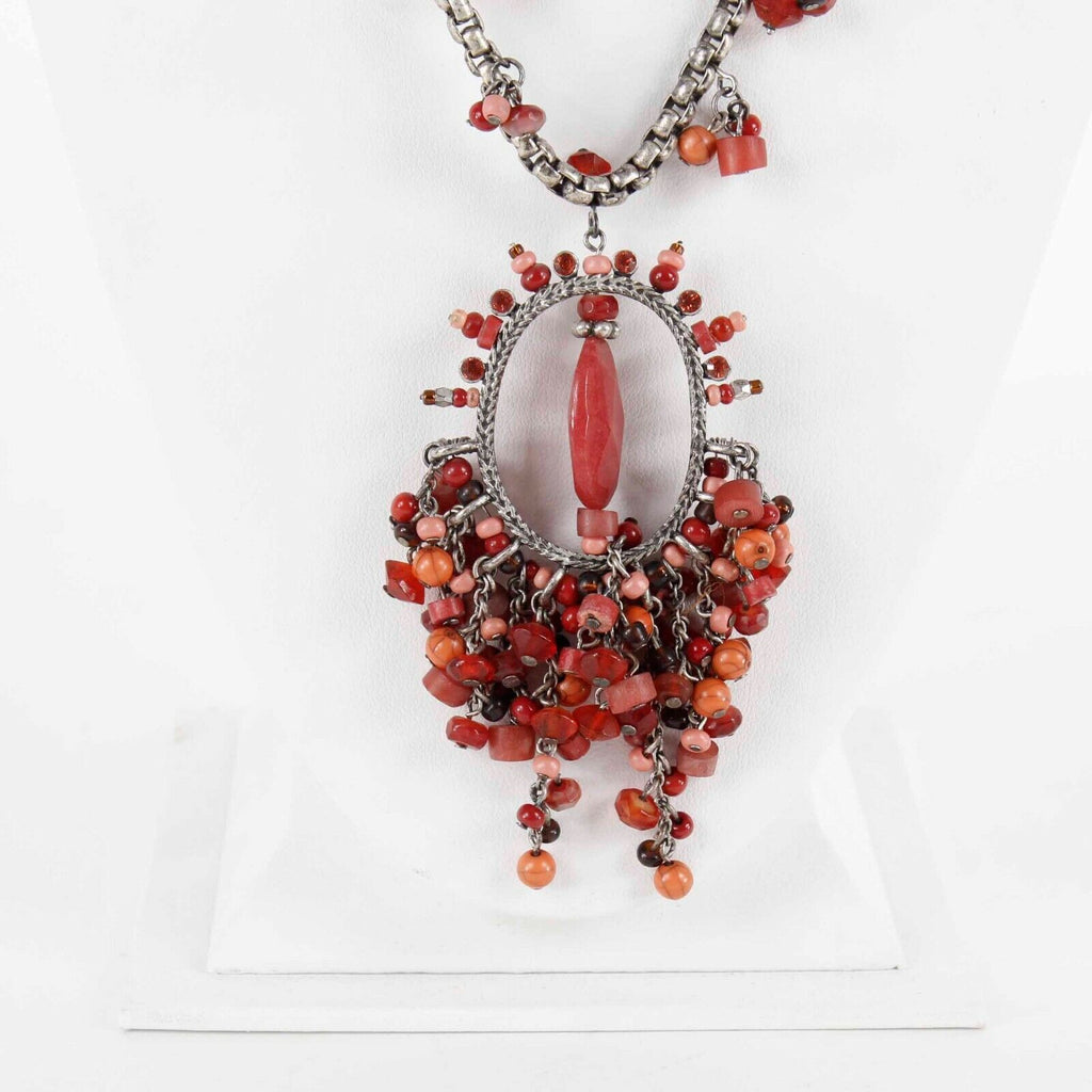 Chicos 25" Ext 4" Silverstone Red Beaded Statement Lobster Clasp Necklace