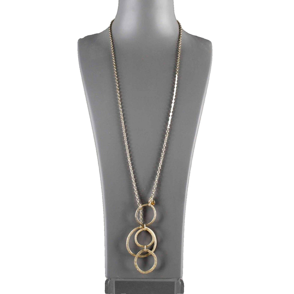 Chicos 34" Goldtone Chain Lariat Circle Pendants Rhinestones Necklace