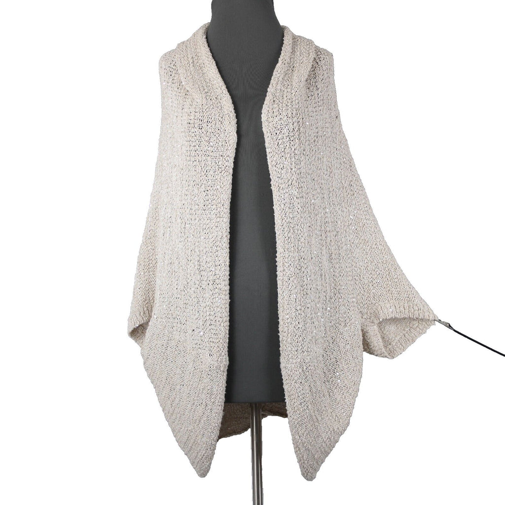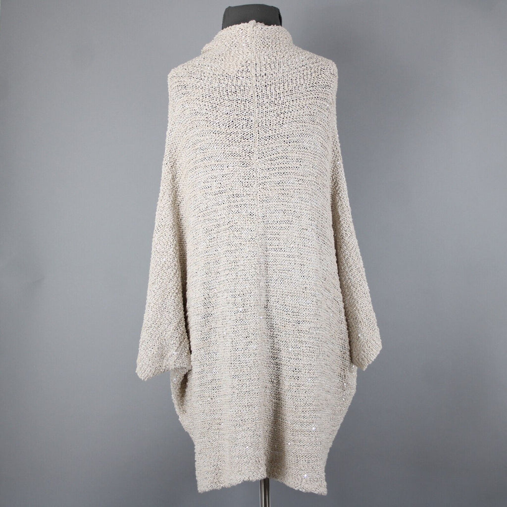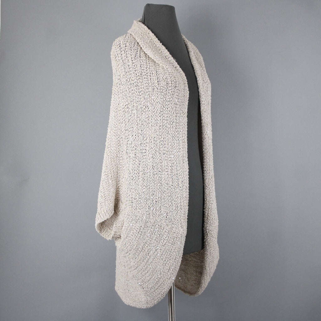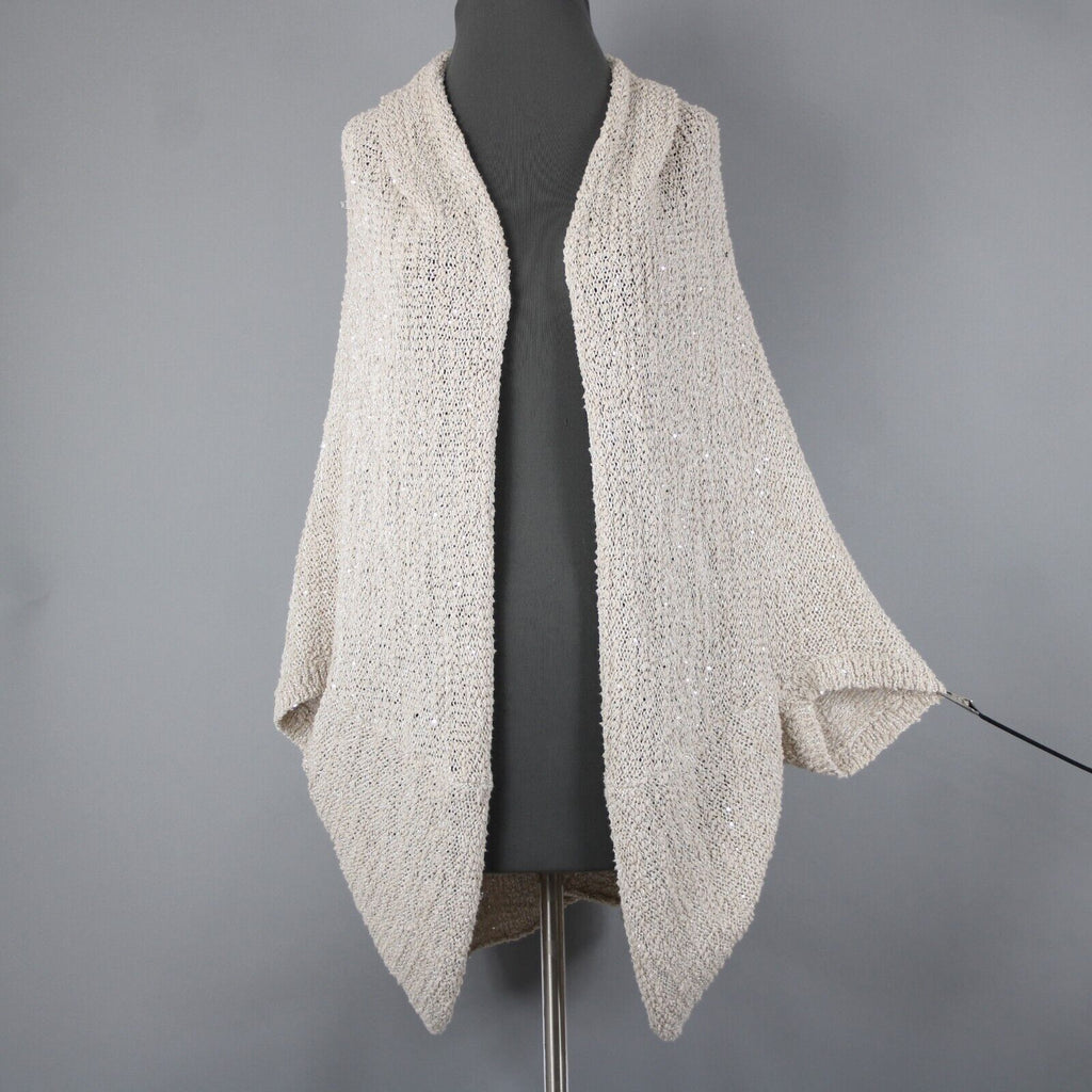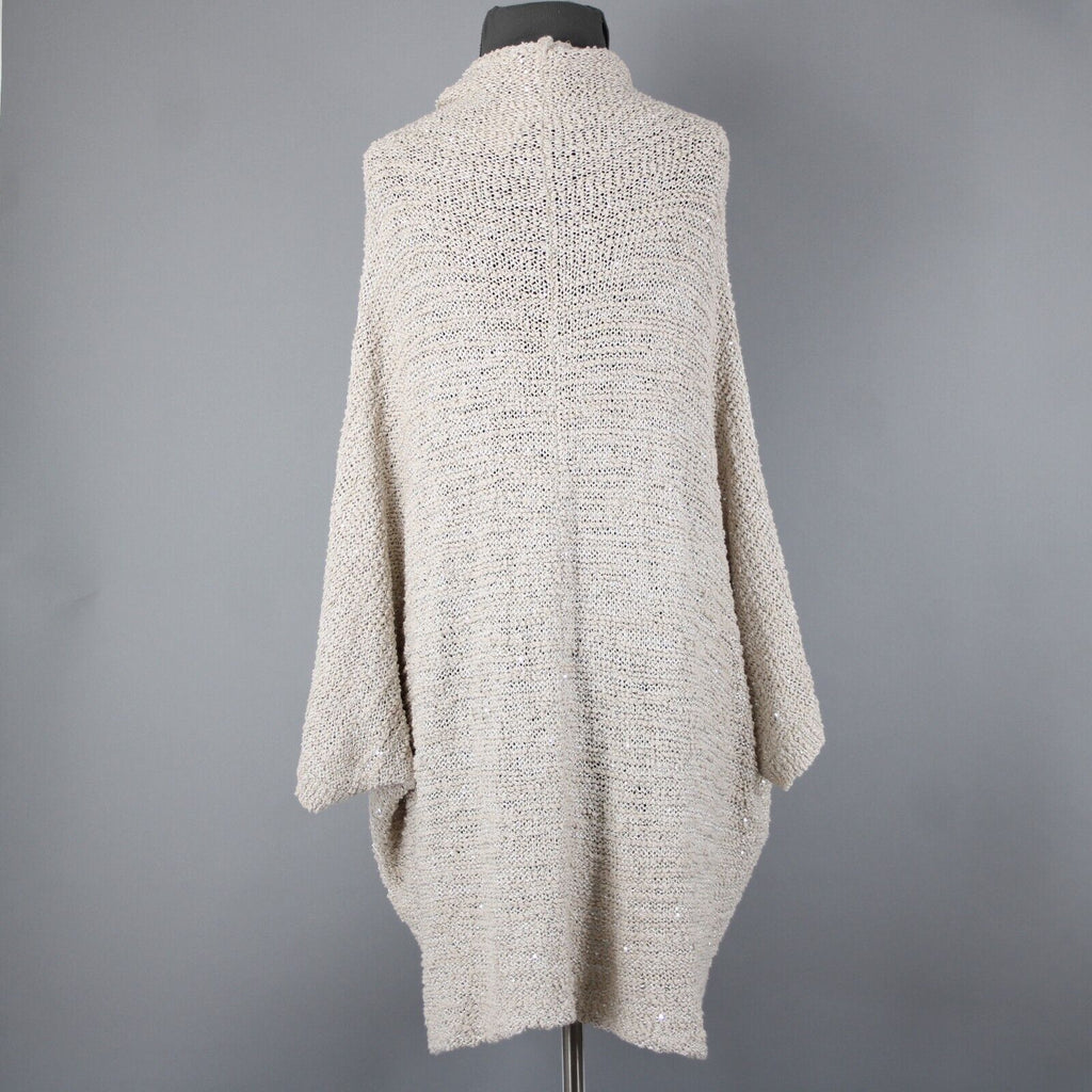 Chico's Black Label NEW $149 Sz S/M Natural Tan Silver Sequin Cocoon Cotton Wrap