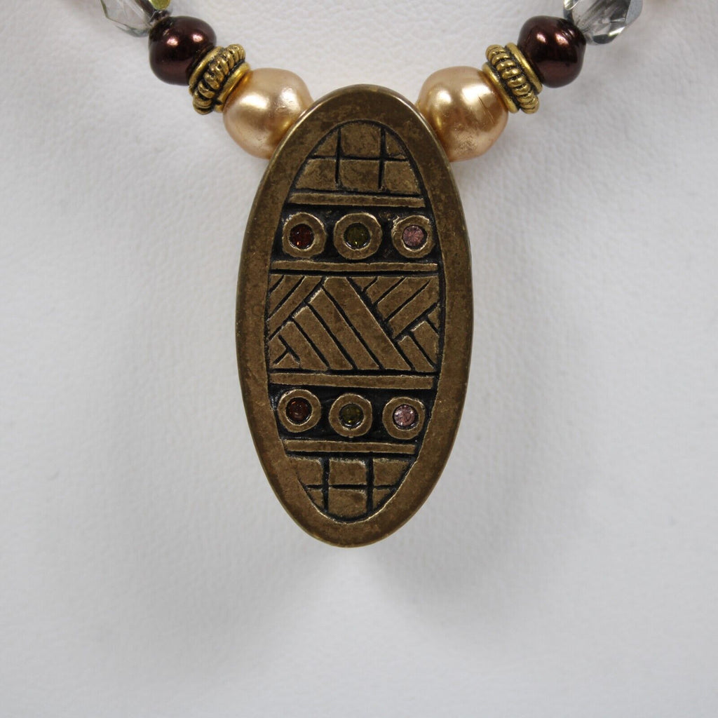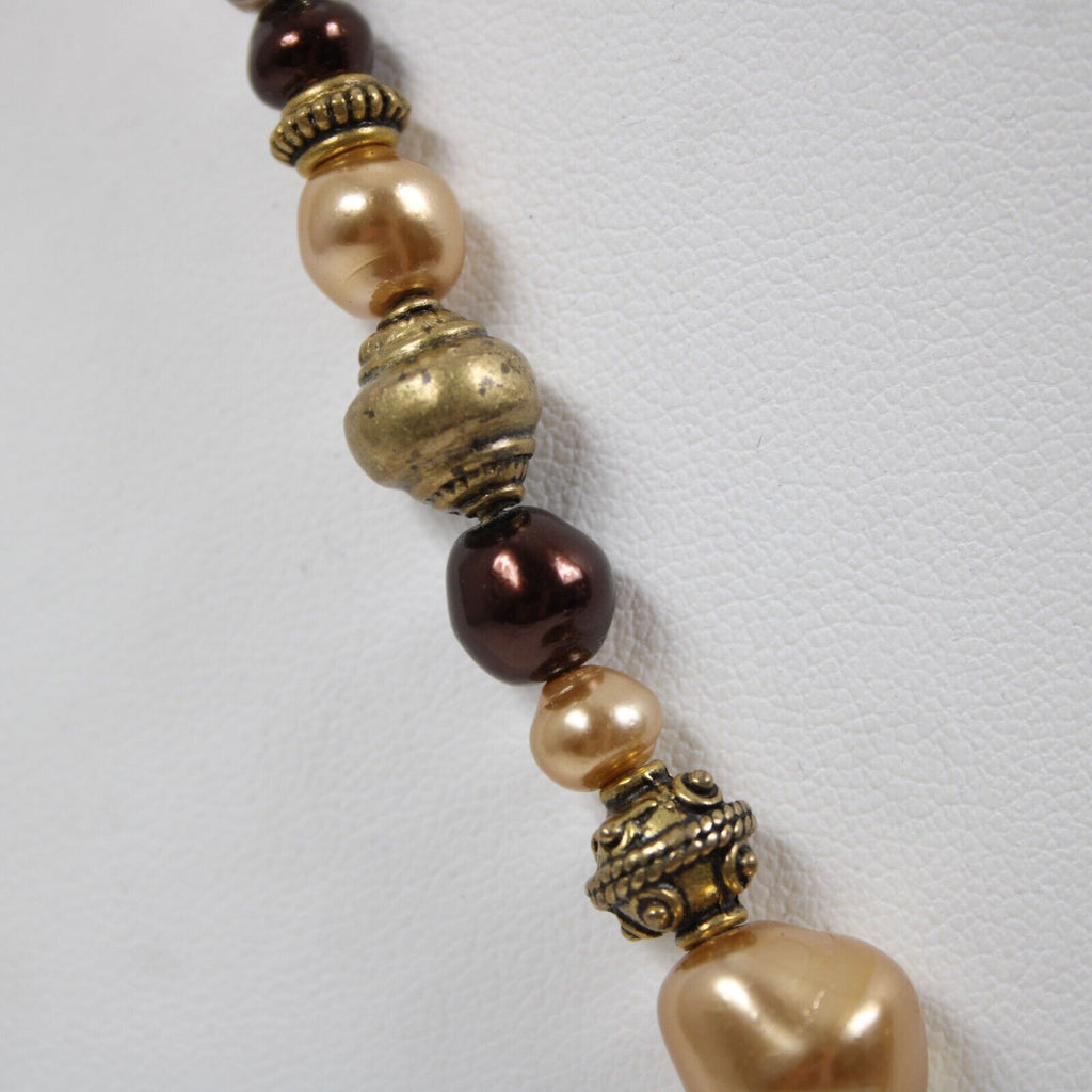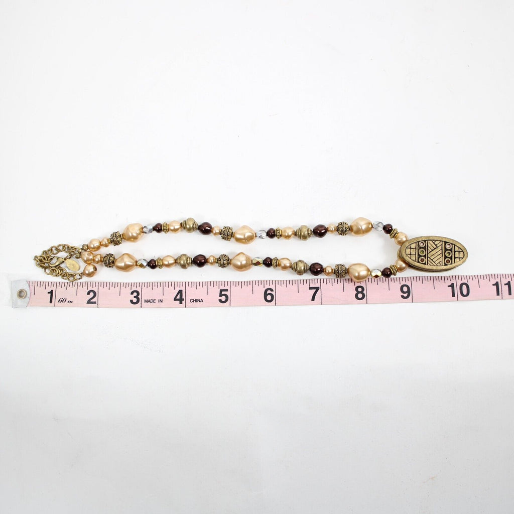 Chicos Bronze Multicolor Faux Pearls Beaded 17" Ext. 3" Necklace