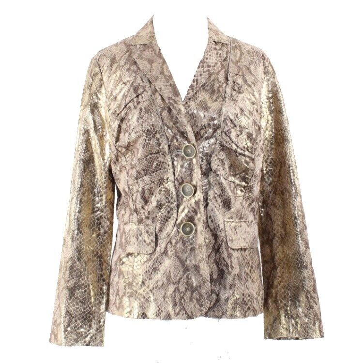 Chicos Layla NEW $139 Sz 0 Gold Brown Snake Ruched Peplum Polyester Jacket