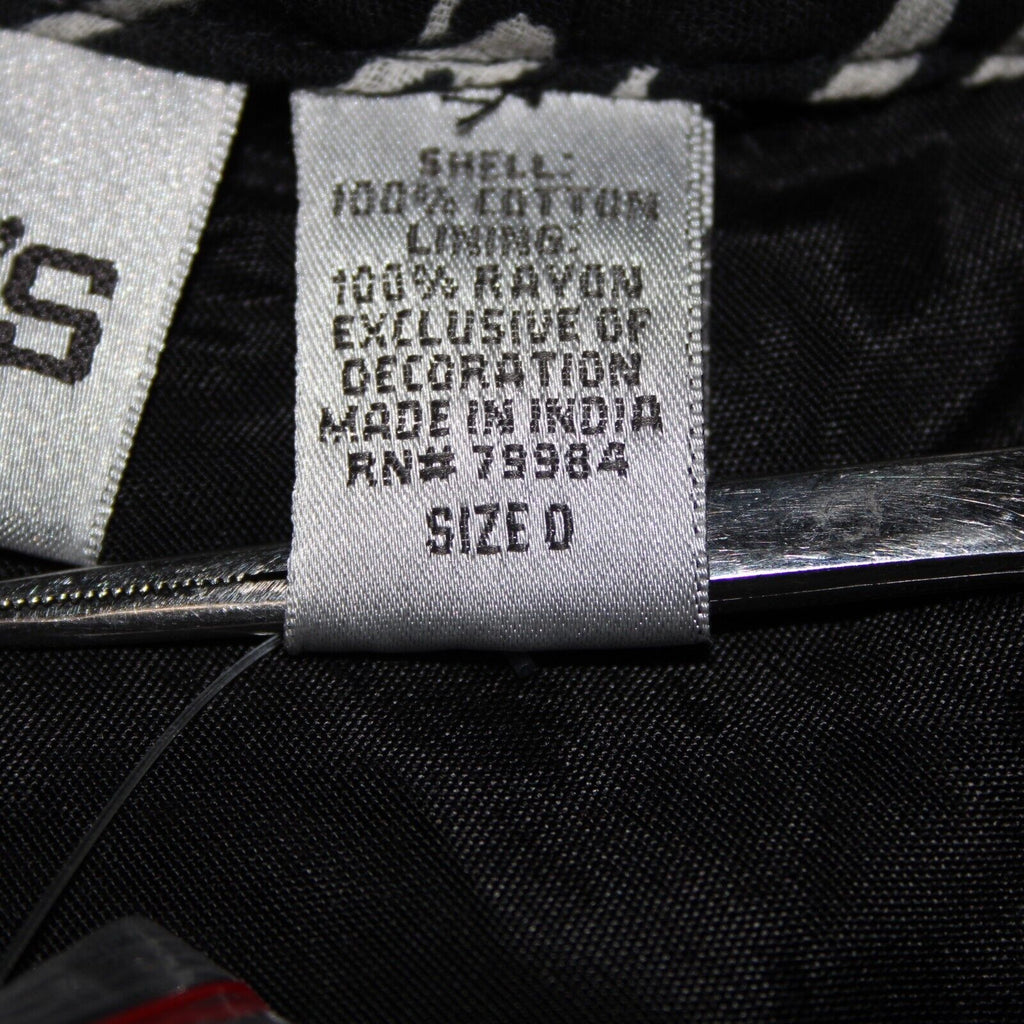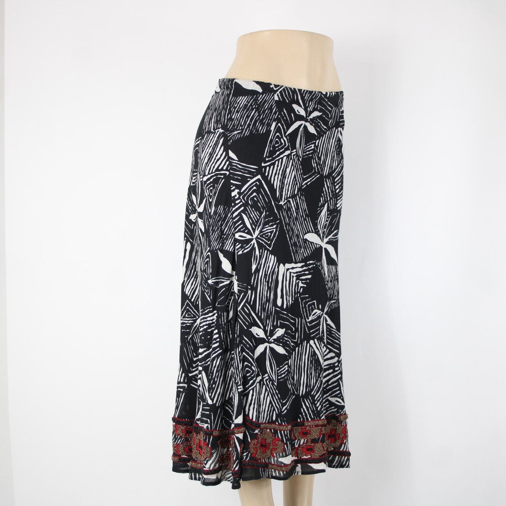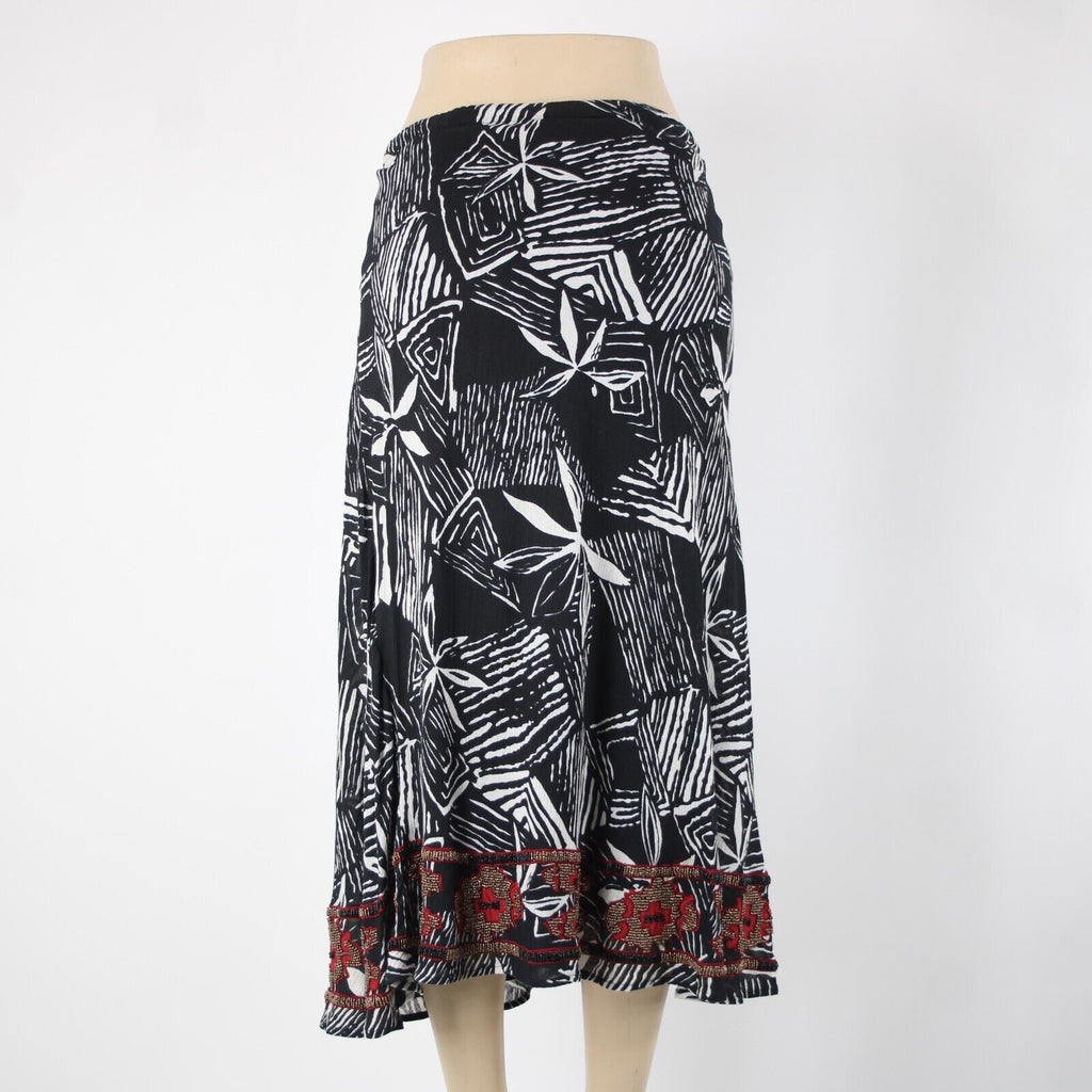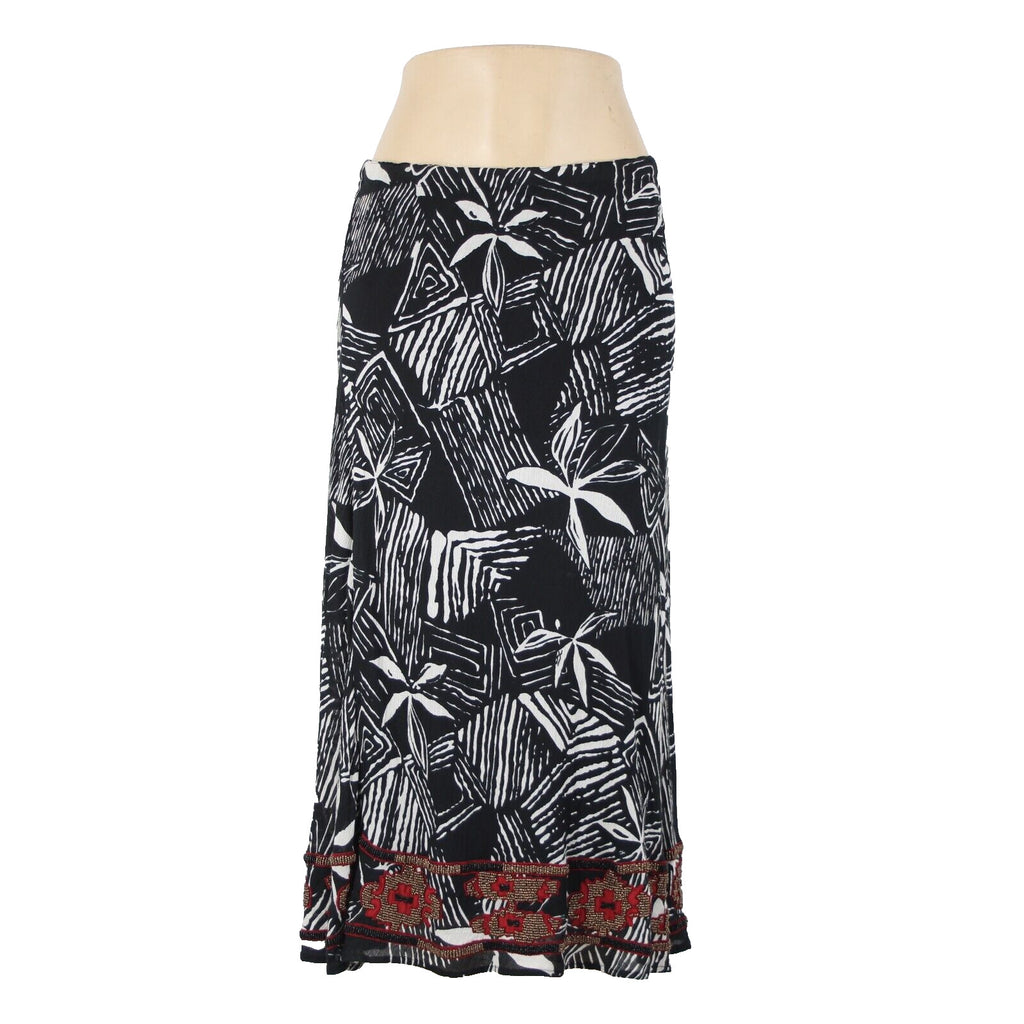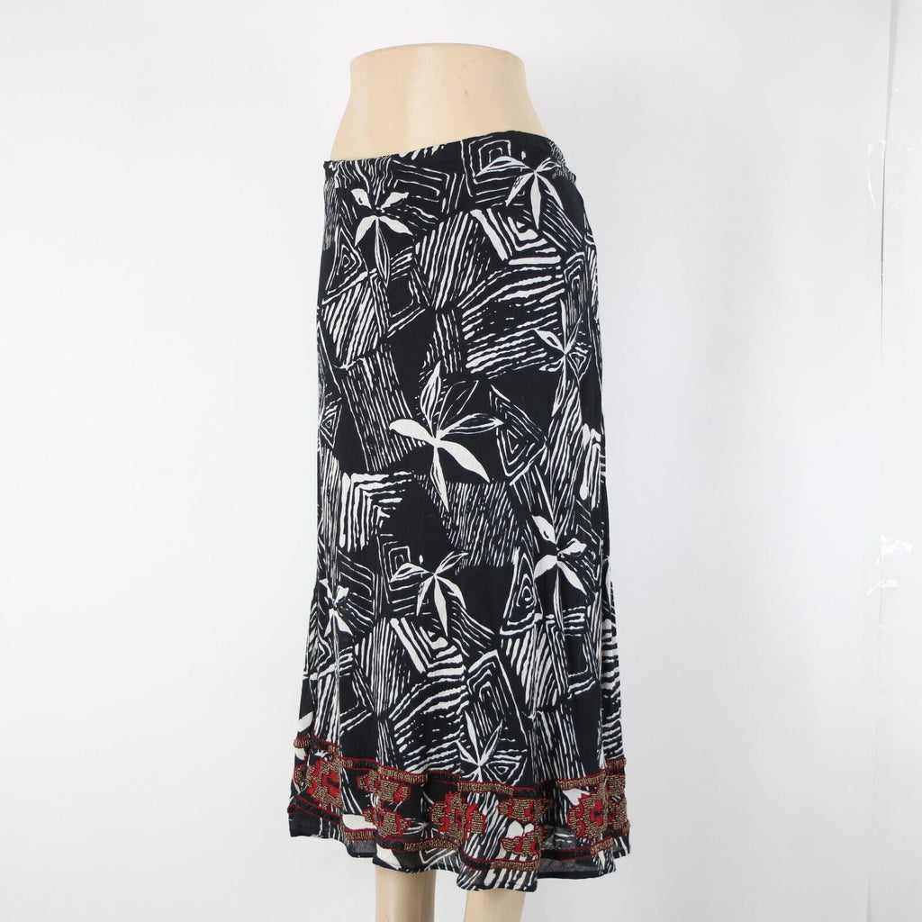 Chicos NEW $118 Africana Sz 0 Black White Red Beaded Elastic 100% Cotton Skirt