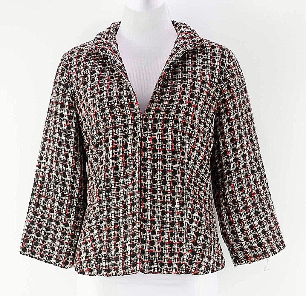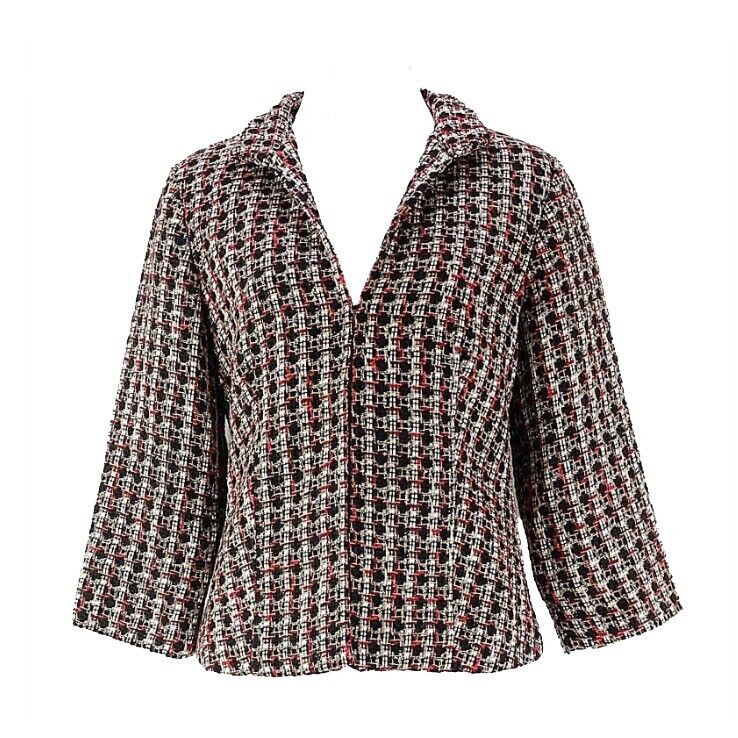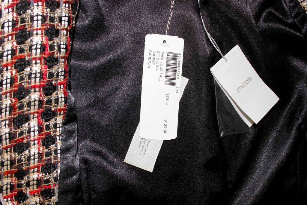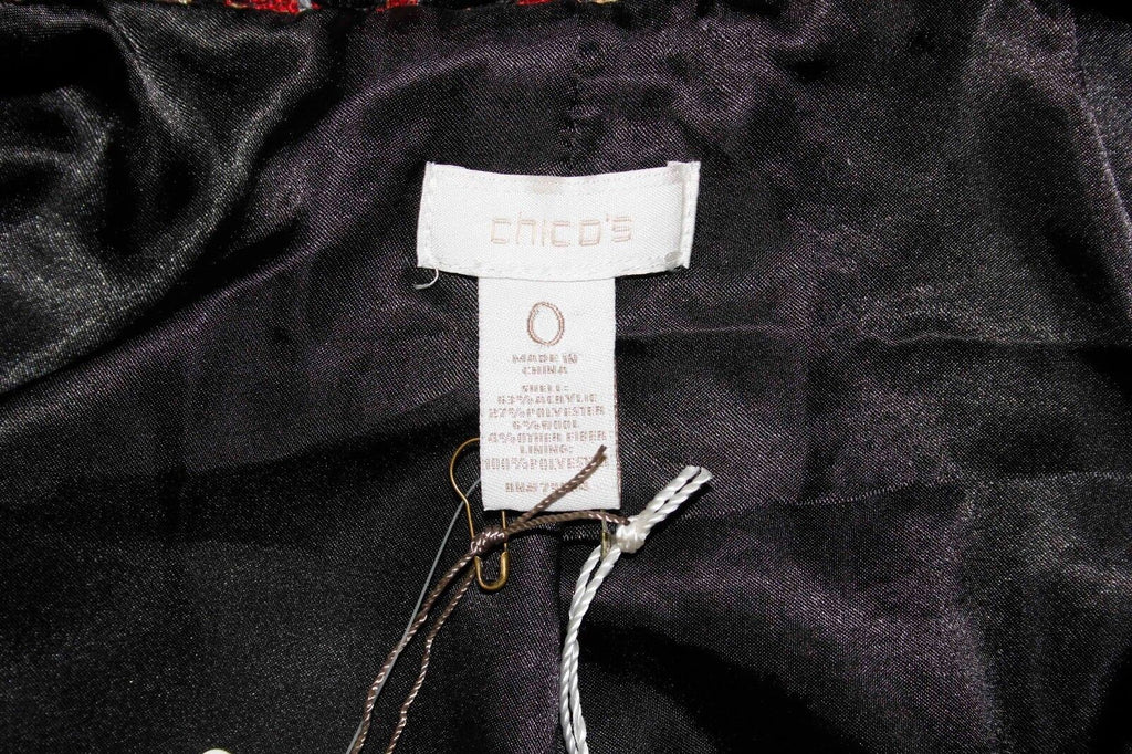 Chicos NEW $129 Sz 0 Blk Red Multi Woven Acrylic Blend Jacket