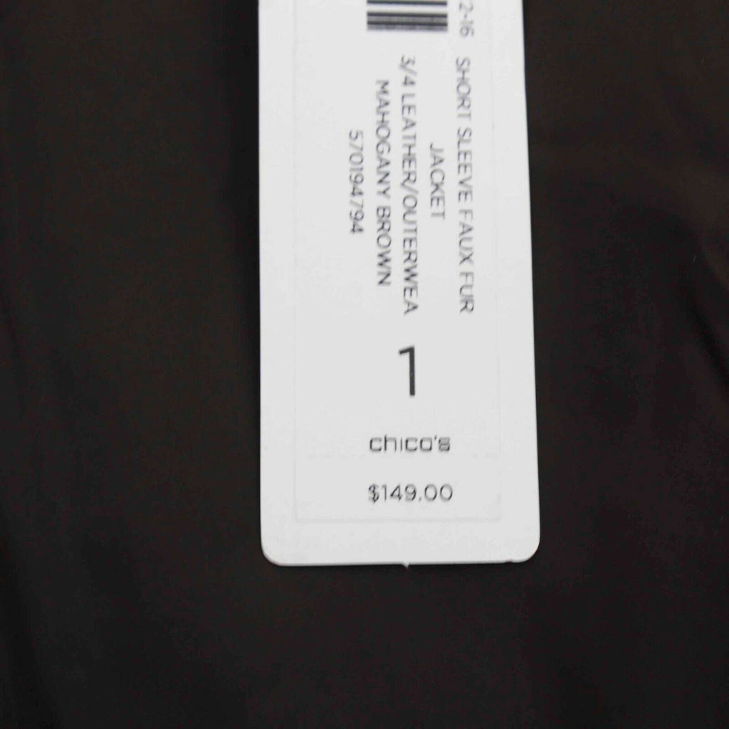 Chicos NEW $149 Sz 1 Brown Faux Fur Toggle Modacrylic Blend Poly Jacket