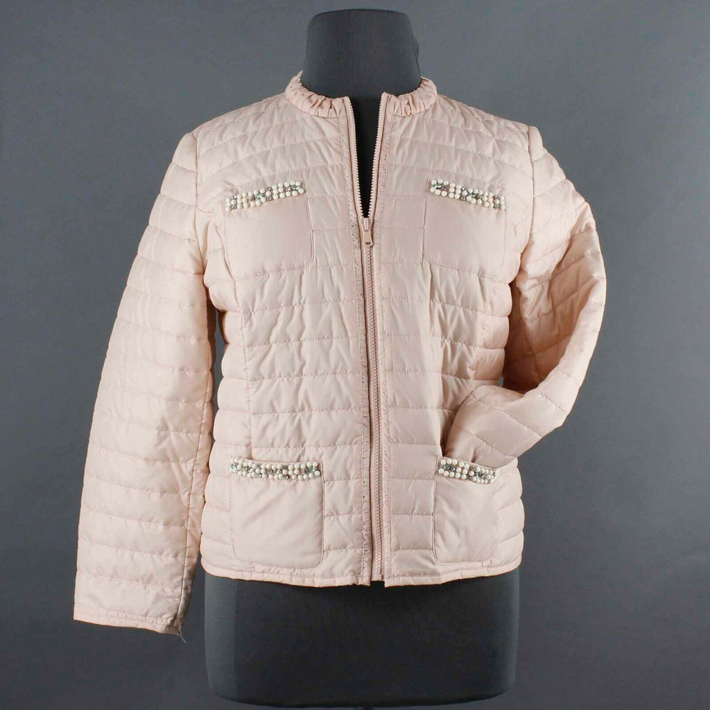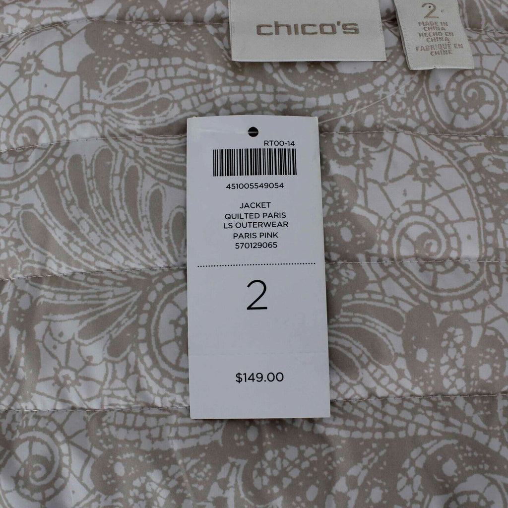 Chicos NEW $149 Sz 2 Paris Pink Quilted Beads And Gems 100% Polyester Jacket