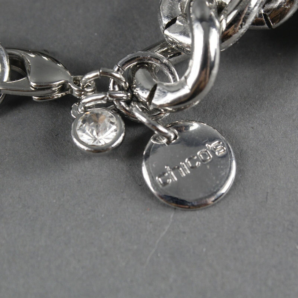 Chicos NEW $39 3" Ext 2" Silvertone Heart Shape Charm Bracelet