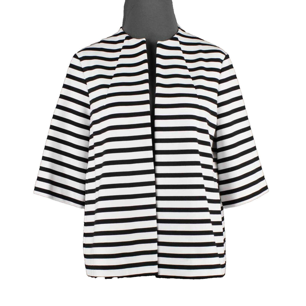 Chicos Sz 0 White Black Stripe Half Sleeve Polyester Rayon Spandex Cotton Jacket