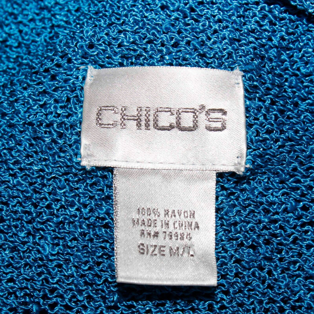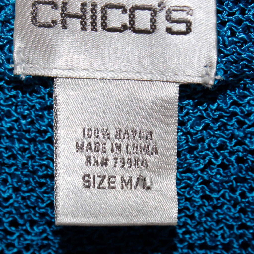 Chicos Sz M Royal Blue Collared Open Knit Fringe 100% Rayon Wrap Sweater