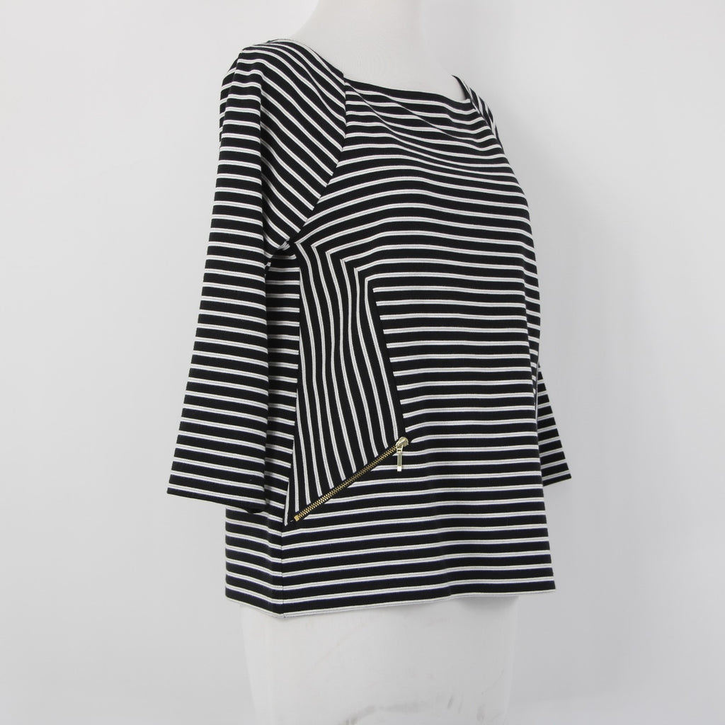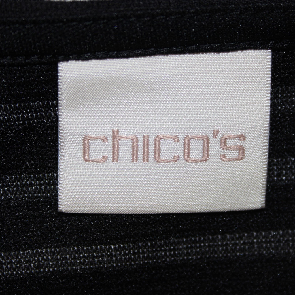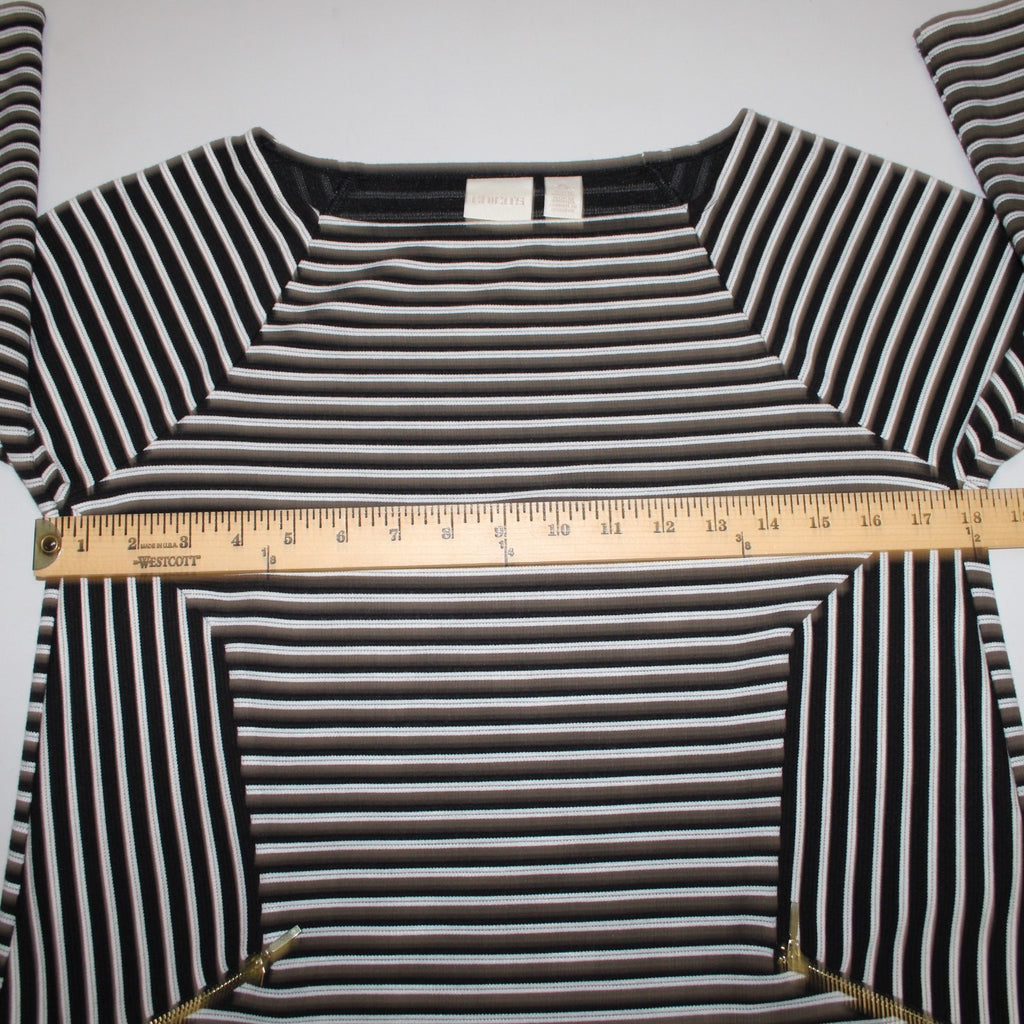 Chicos Top Sz 0 Black White Striped Zipper Detail Polyester Rayon Top