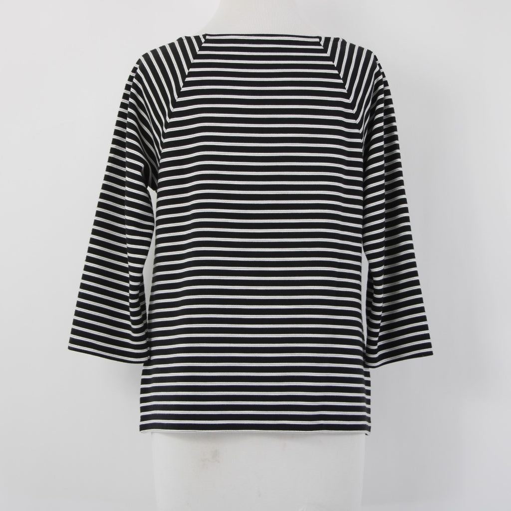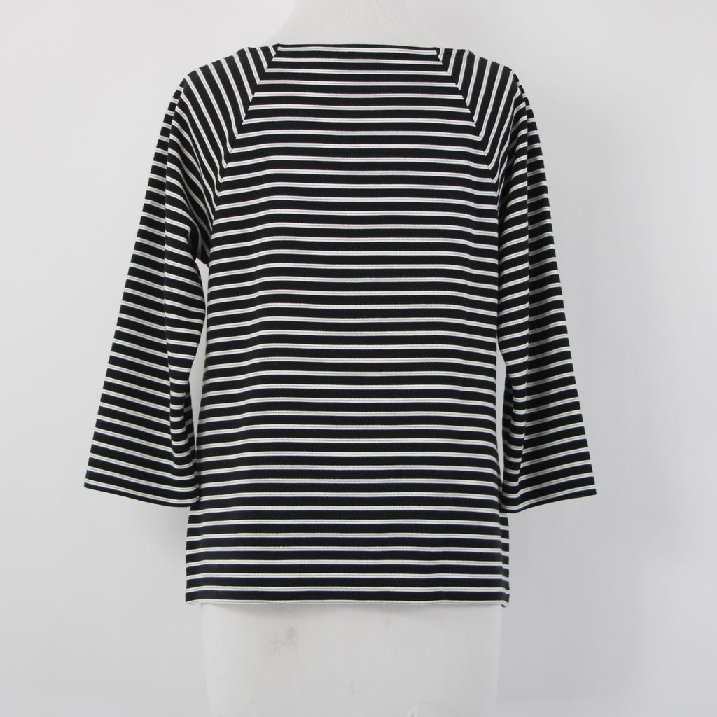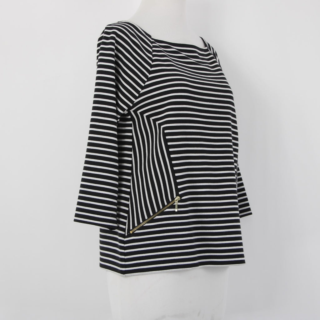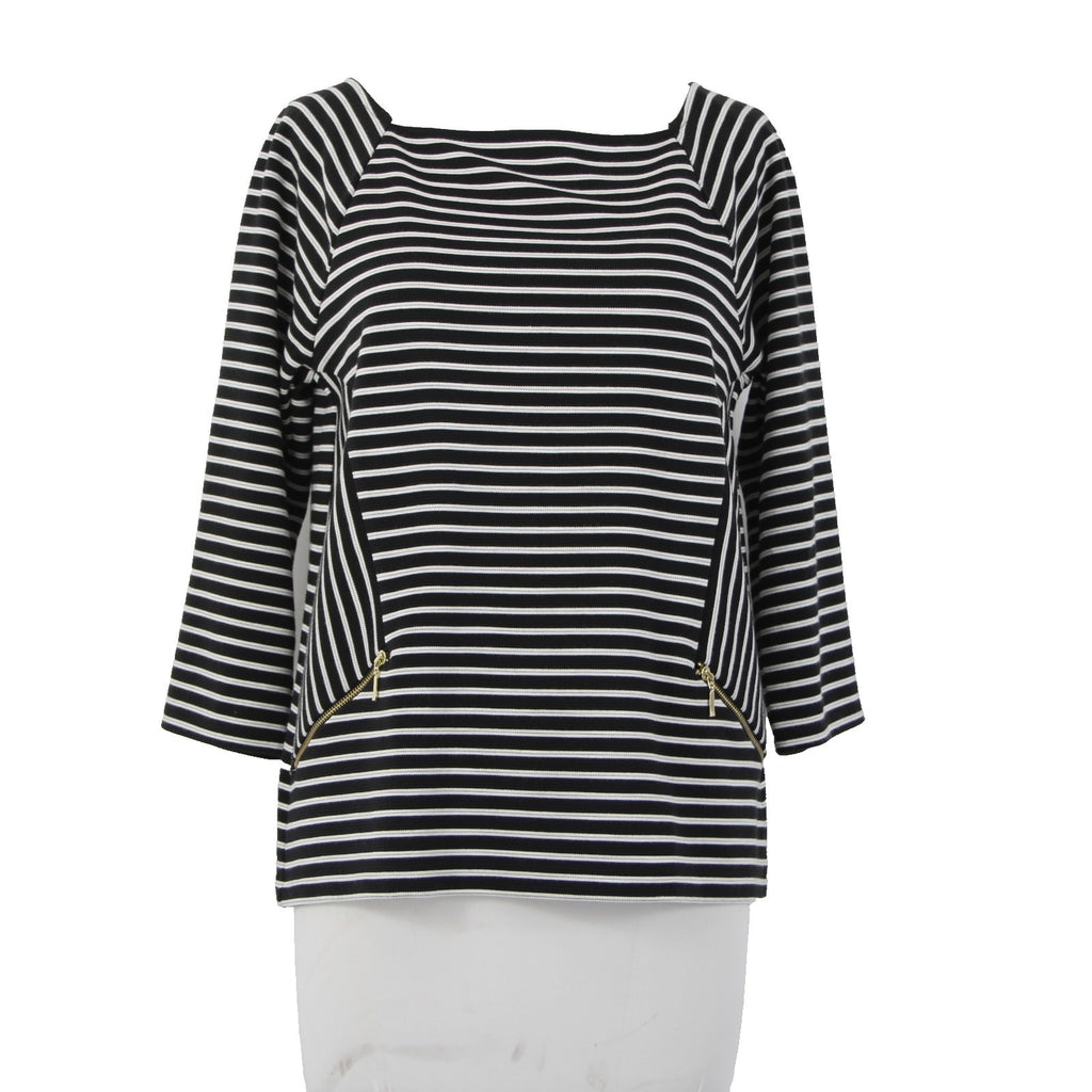 Chicos Top Sz 0 Black White Striped Zipper Detail Polyester Rayon Top