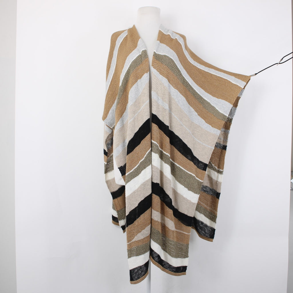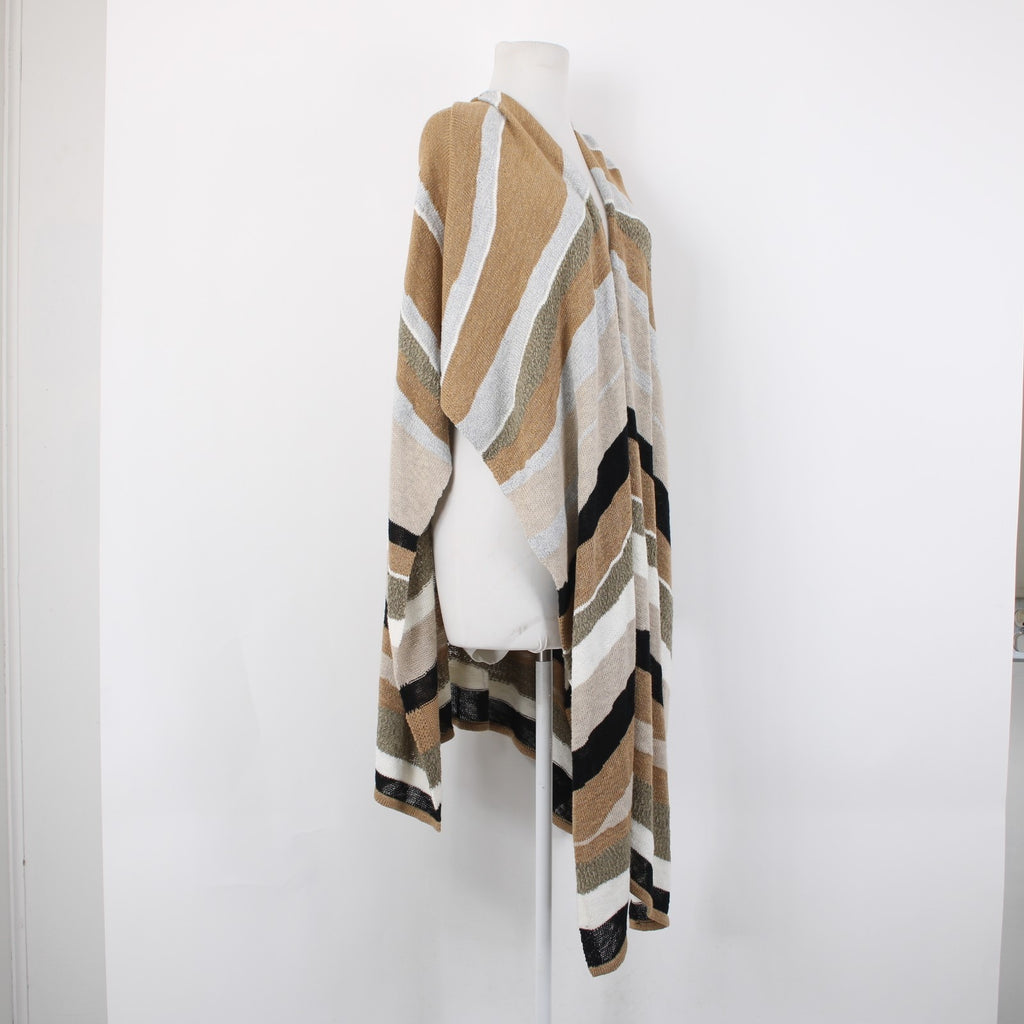 Chicos Wrap Sz One Size Brown Black Multi Color Striped Cotton Nylon Wrap