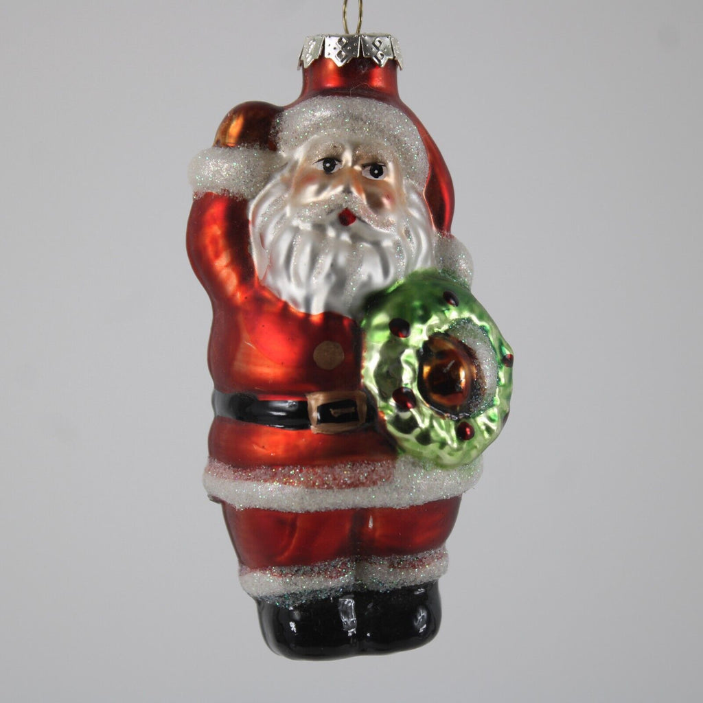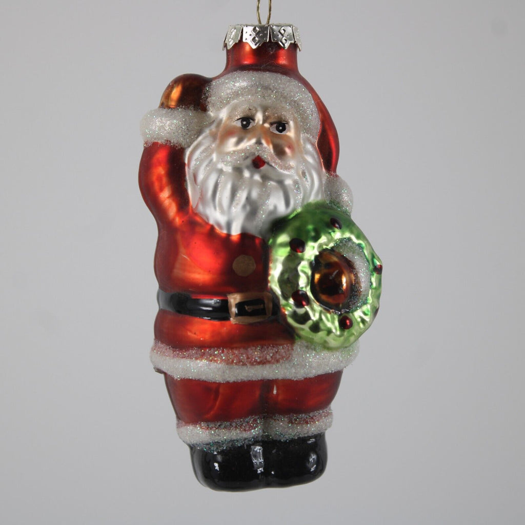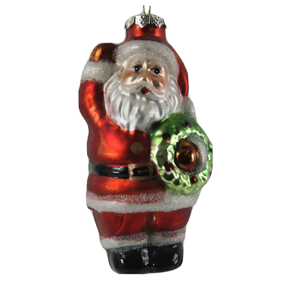 Christopher Radko Victorian Santa Claus W Wreath Waving Blown Glass 5" Ornament