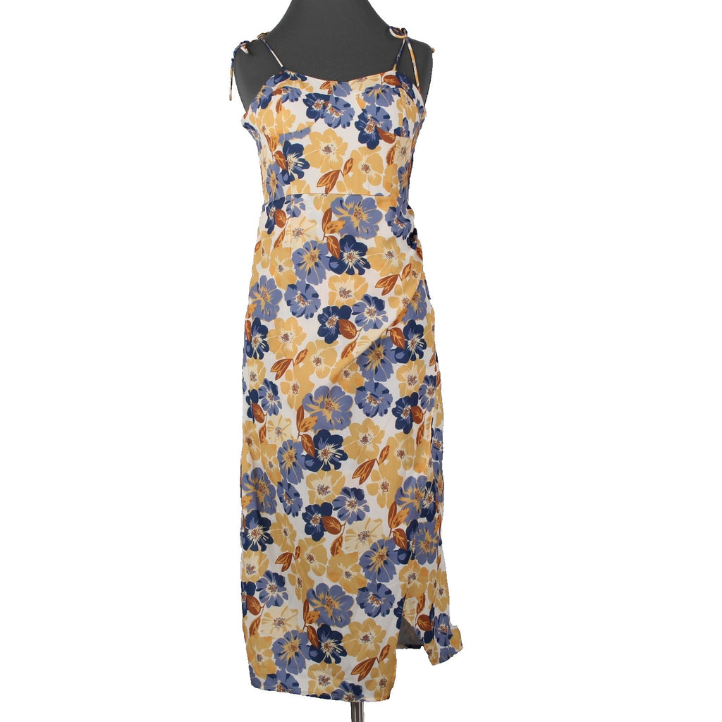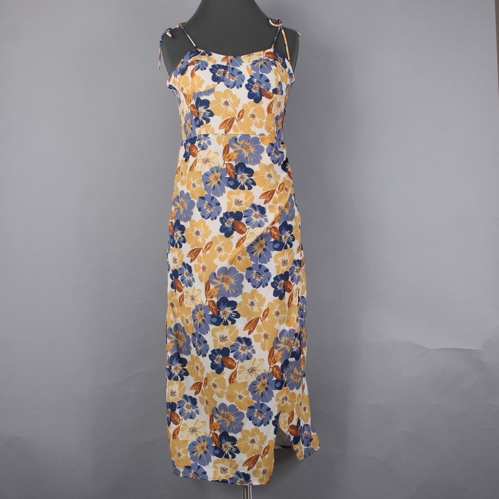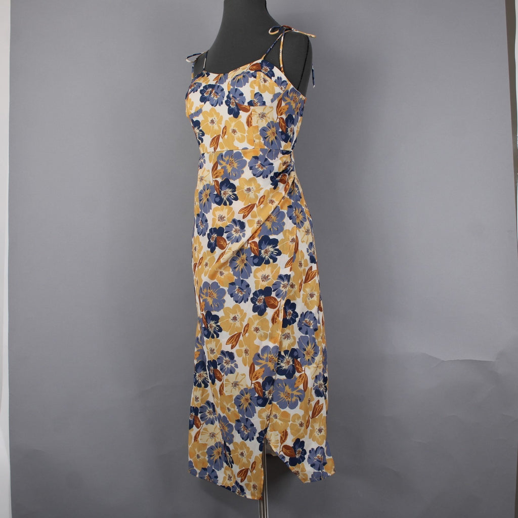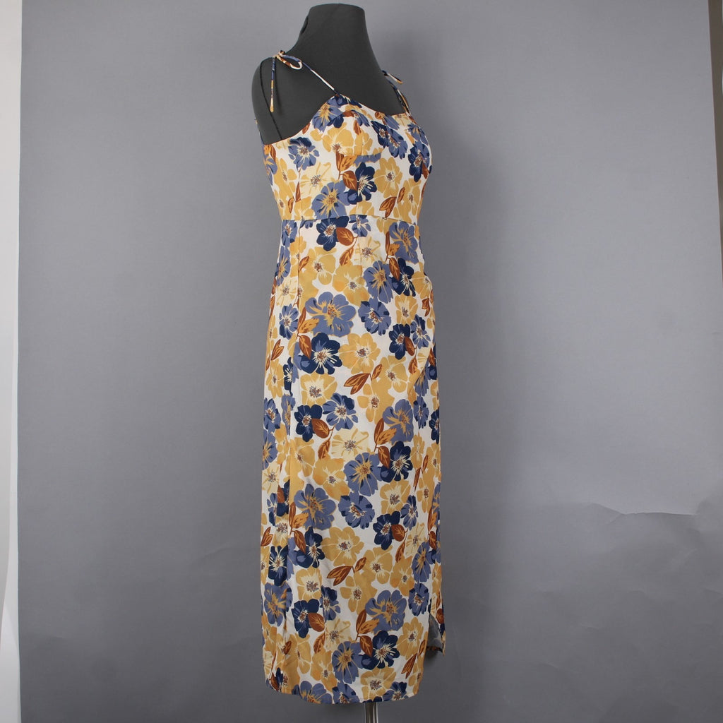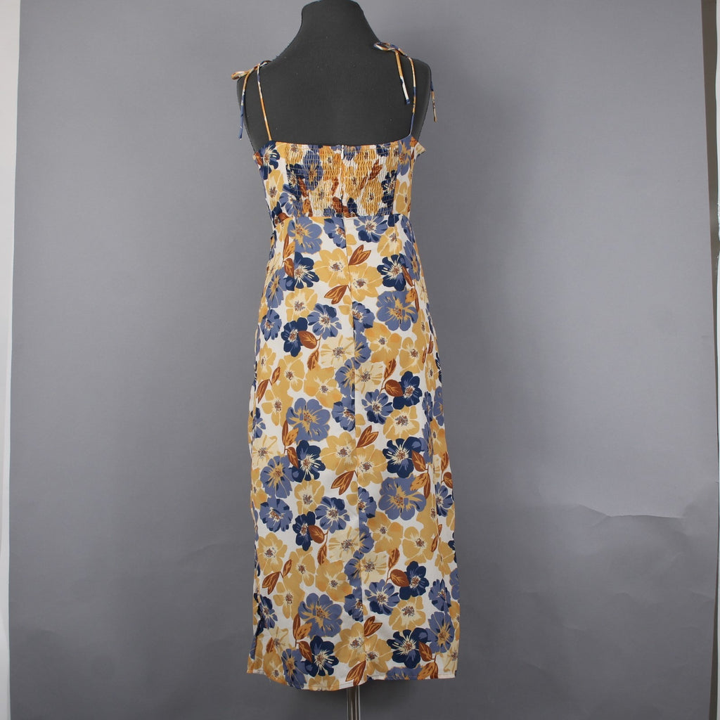 Cider Dress NEW Sz 4? Smock Back Yellow Cream Blue Floral Lined 100% Poly Dress