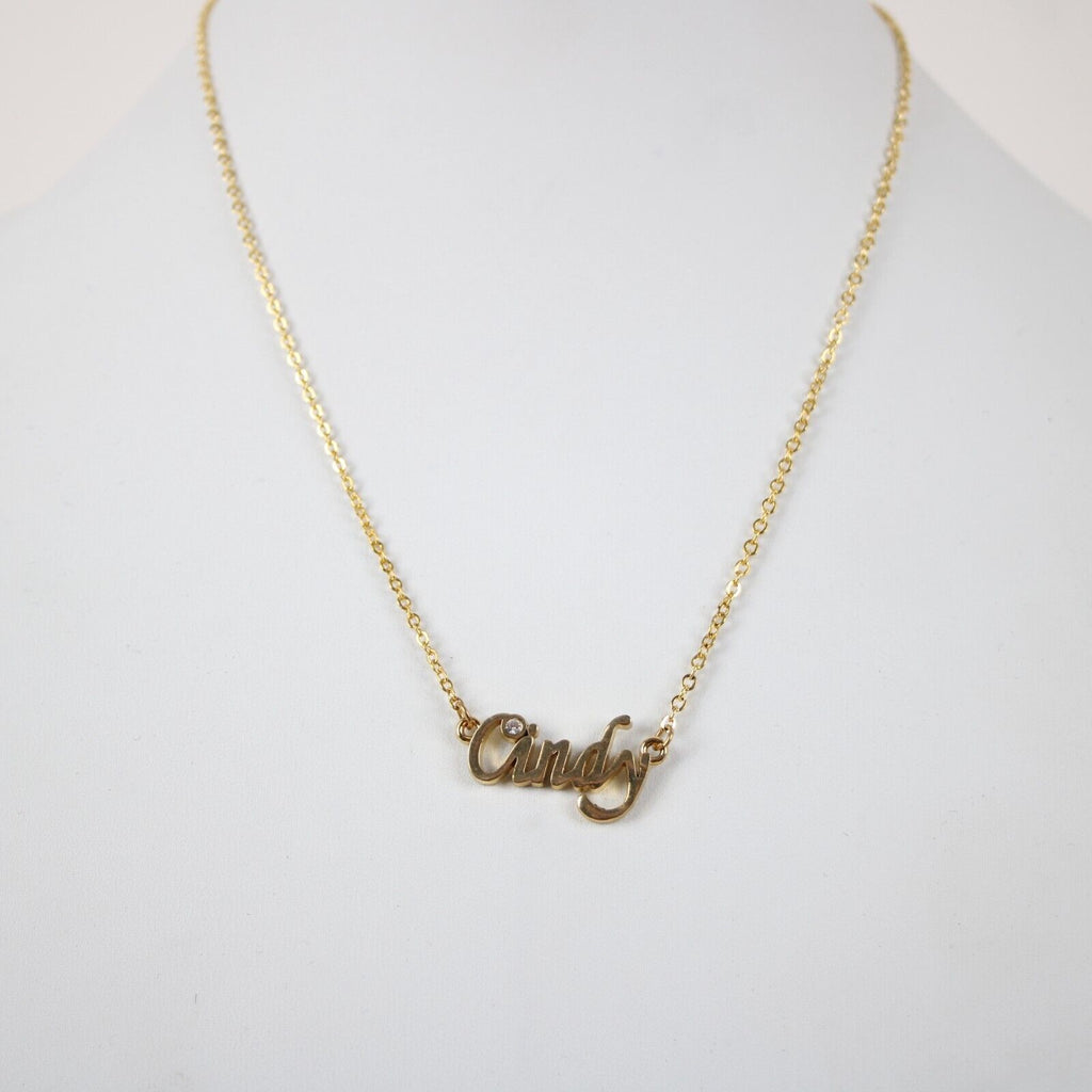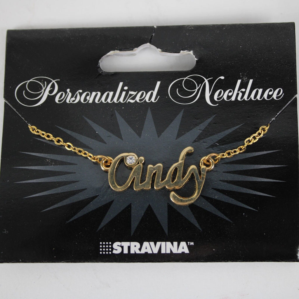 CINDY NEW Name Goldtone Rhinestone Accent 14.5" w 4.5" Multi Ring Ext Necklace