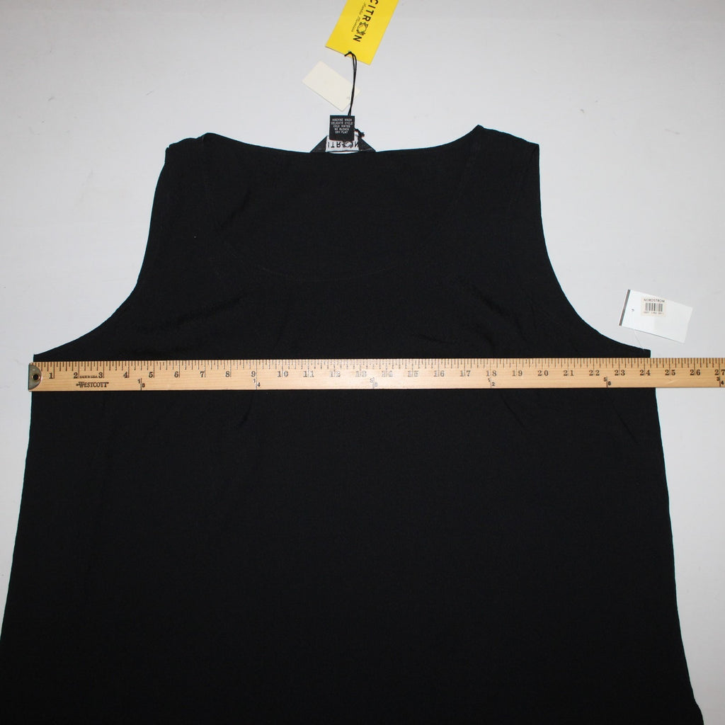 Citron Top NEW $88 Sz 2x Black Round Neck Sleeveless 100% Silk Top