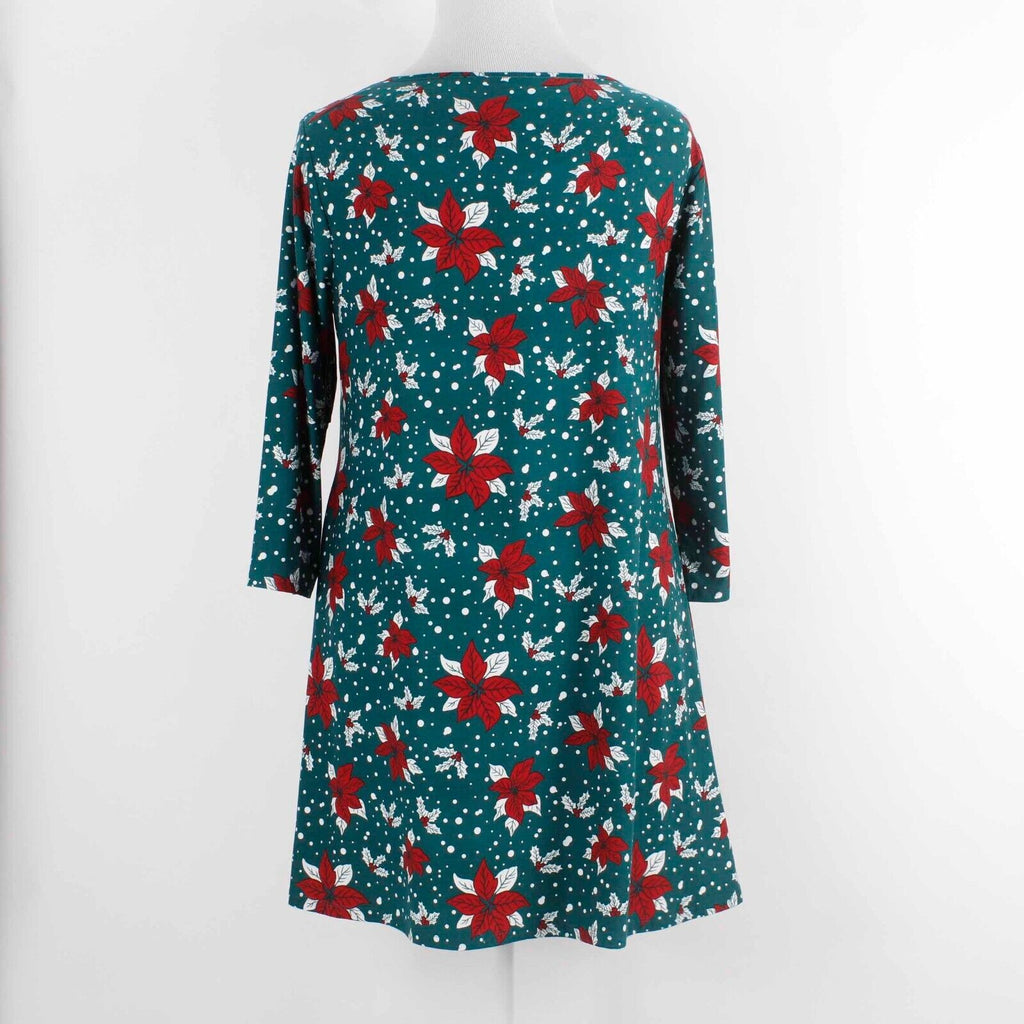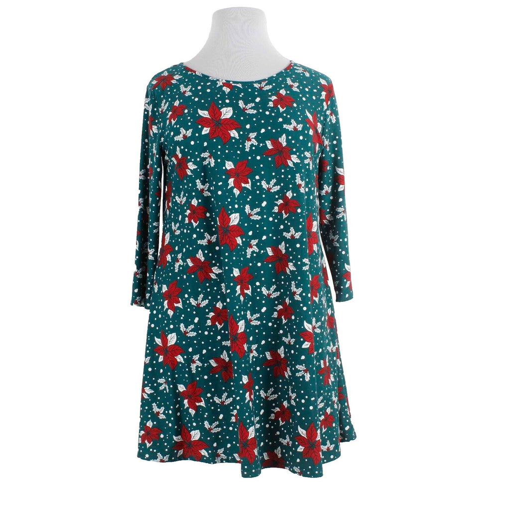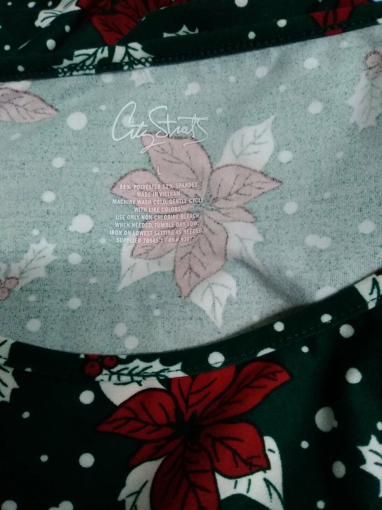 City Streets NEW $38 Sz L Green Red Multi Poinsettia Poly Spandex Knit Dress