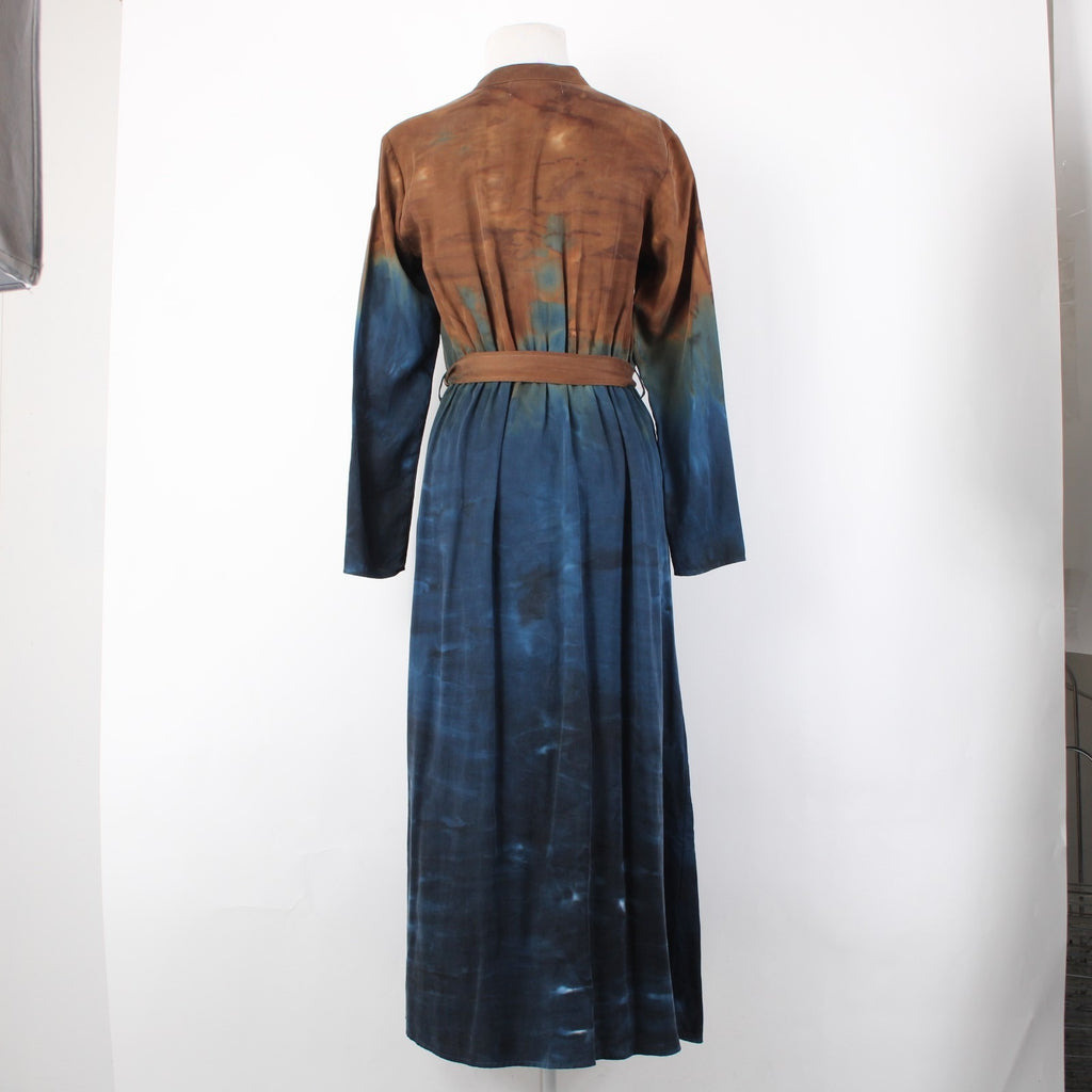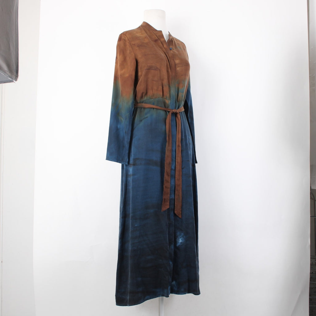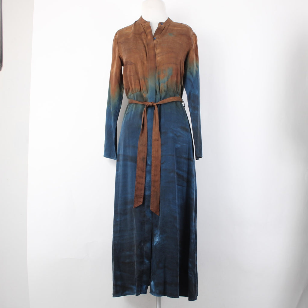 Cloth And Stone Dress Sz XS Brown Navy Blue Ombre Button Frnt 100% Tencell Dress