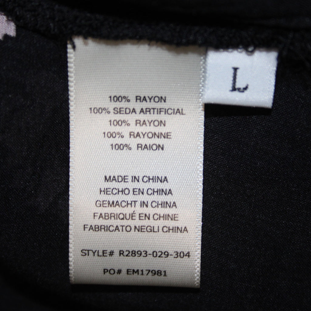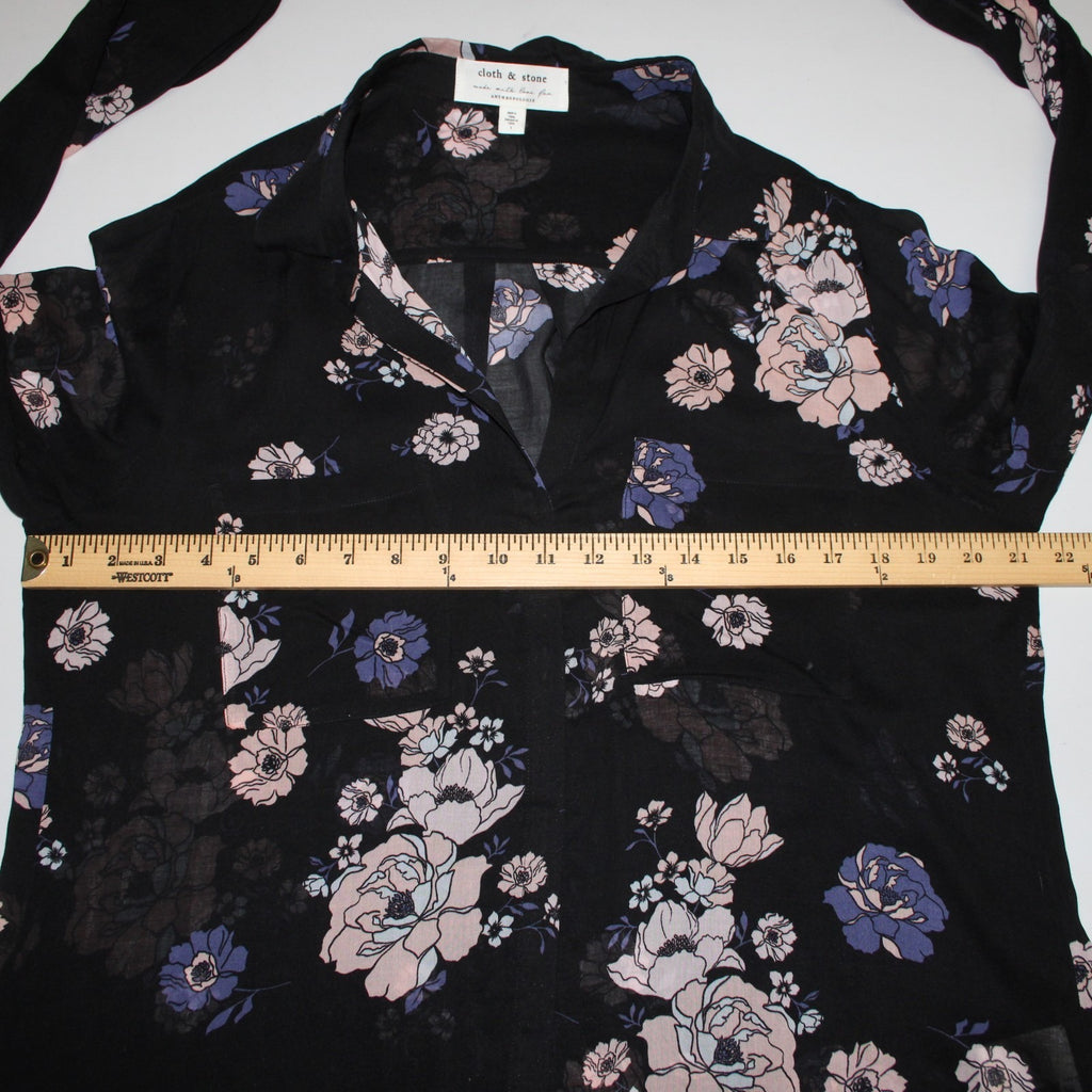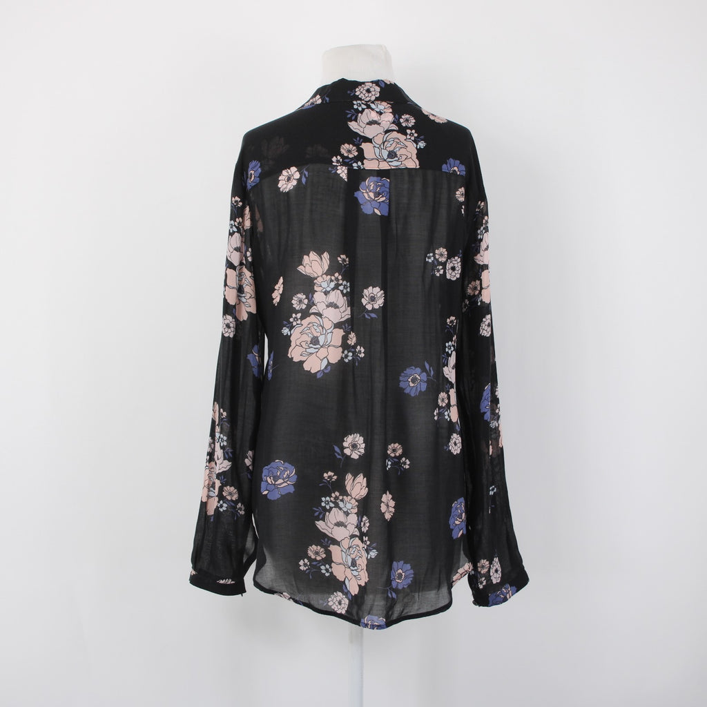 Cloth And Stone Top Sz L Black Blue Multi Color Collared Buttons Sheer Rayon Top