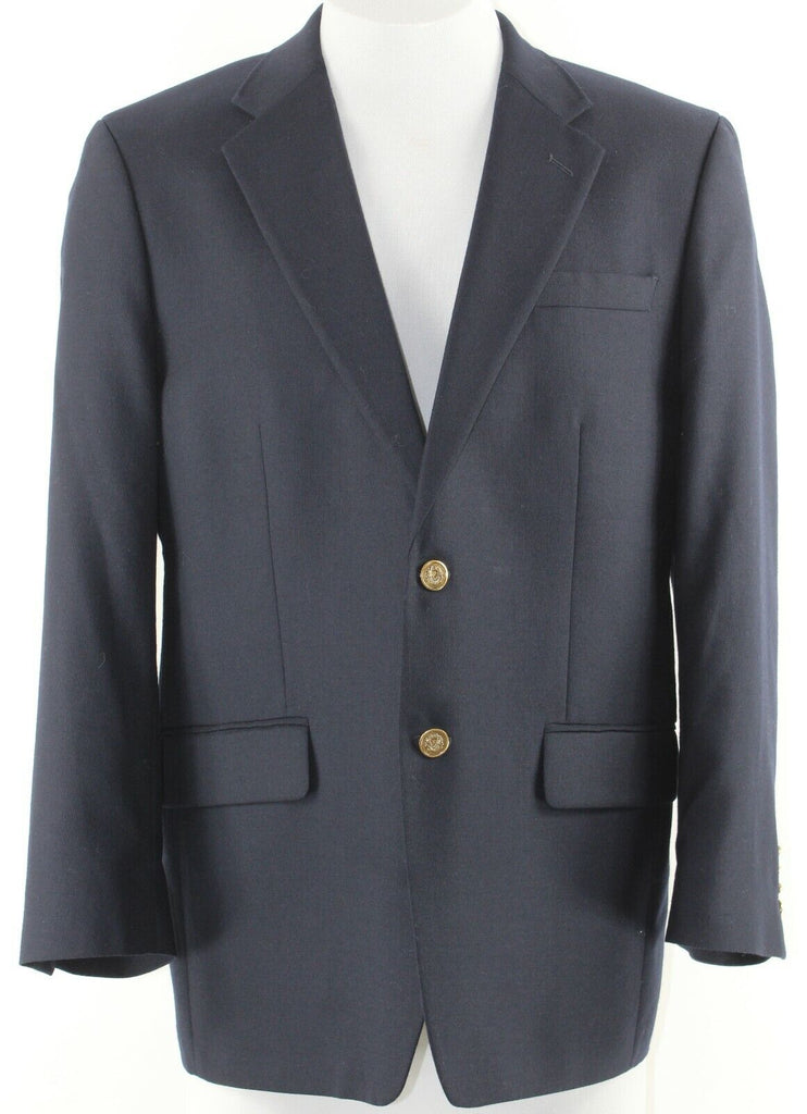 Club Room Sz 42R Navy Blue Gold Button 100% Wool Lined Blazer Jacket