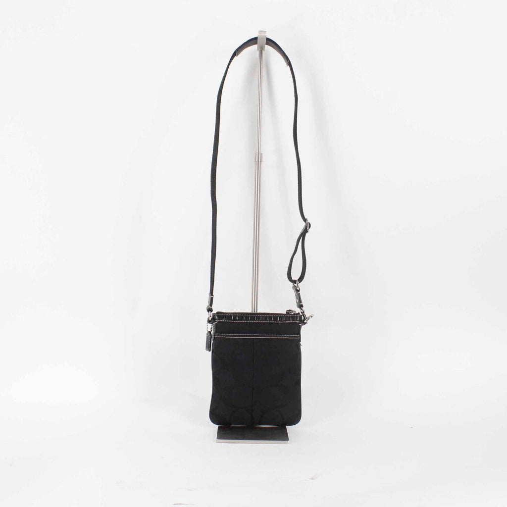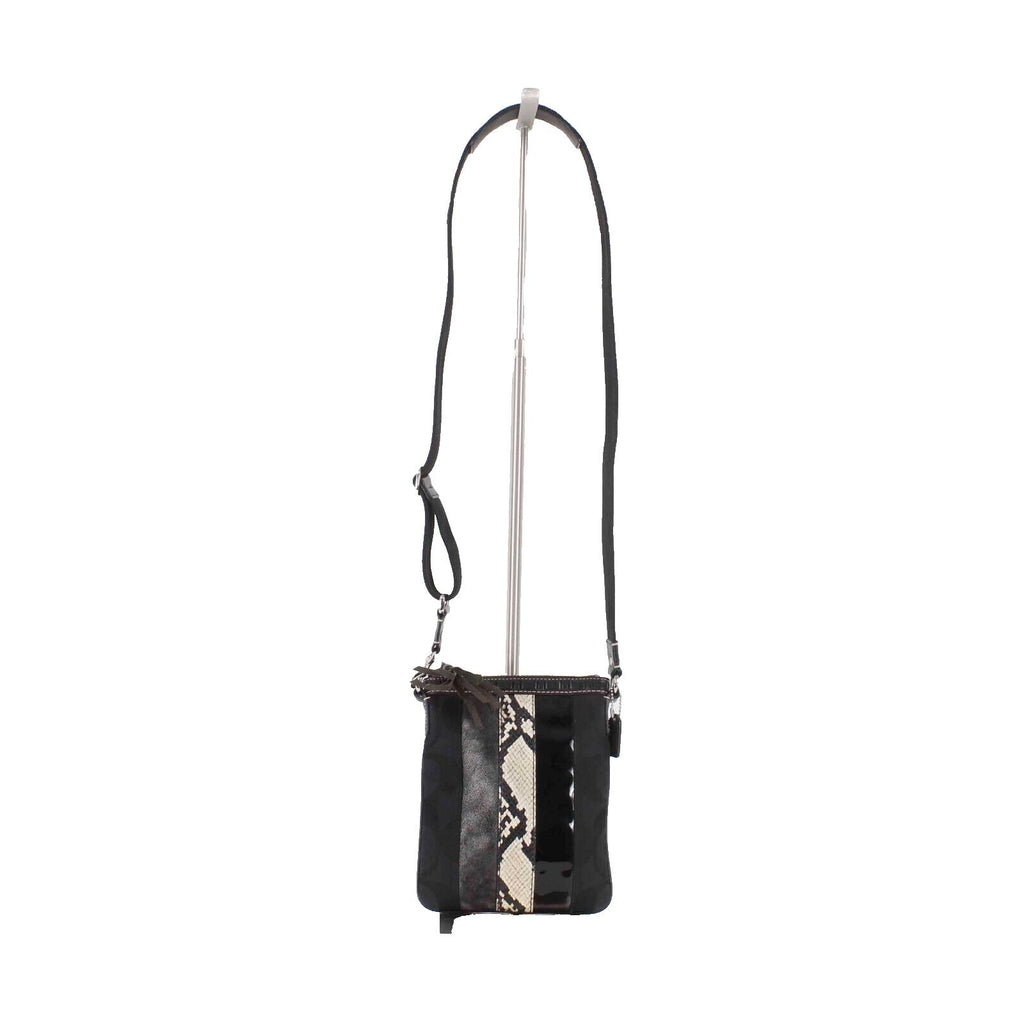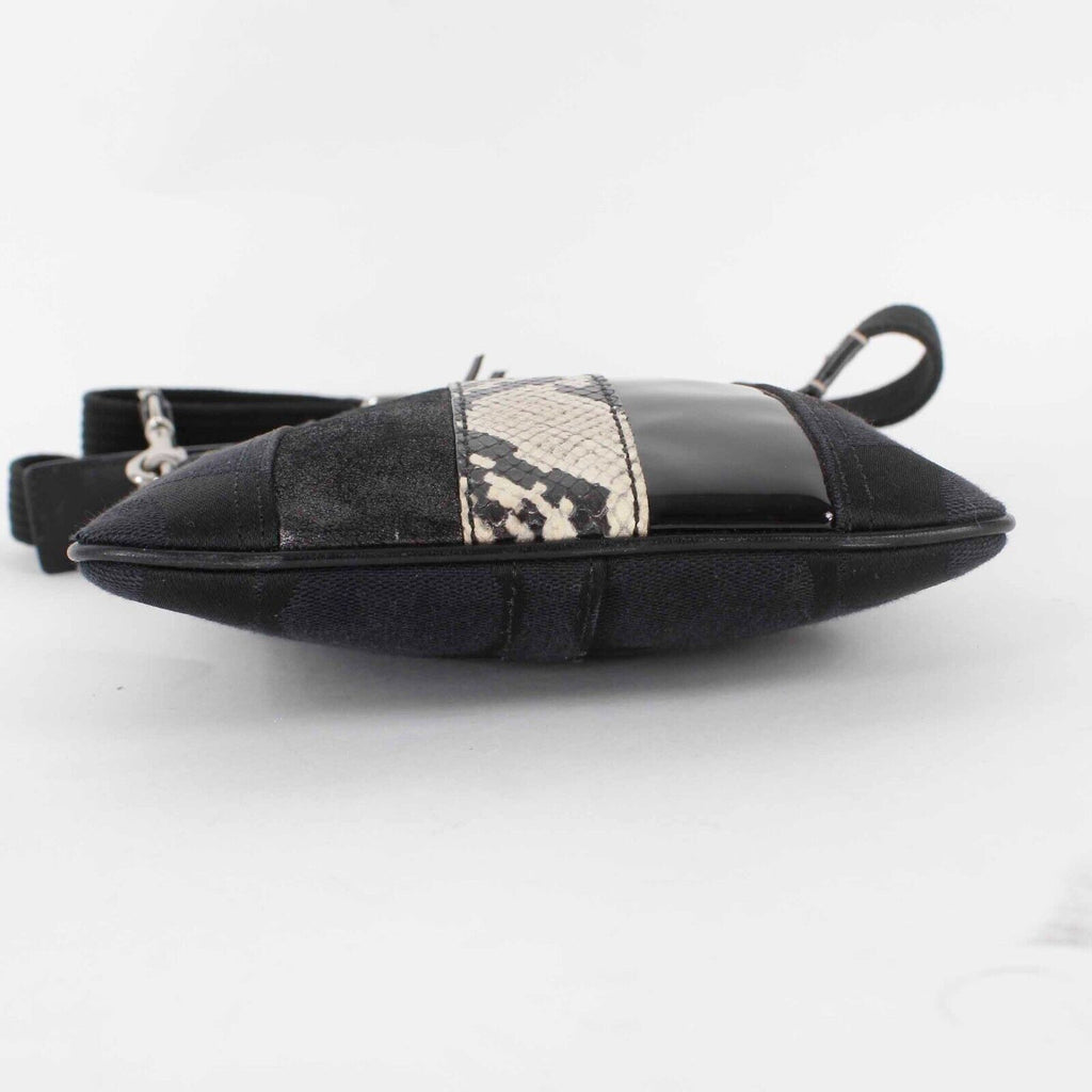 Coach 8.5 x 7 x .5 Black Beige Canvas Patent Snake Smooth Leather Xbody Purse