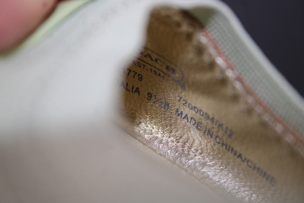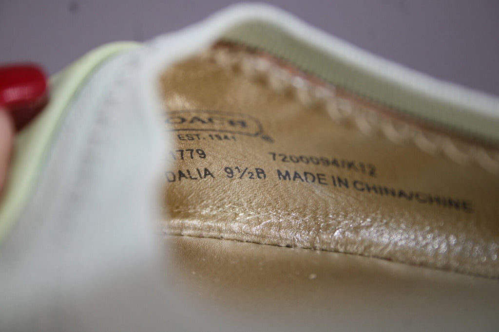 Coach Dalia Sz 9.5 B Mint Green Gold Slip On Leather Upper Inner Ballet Flats