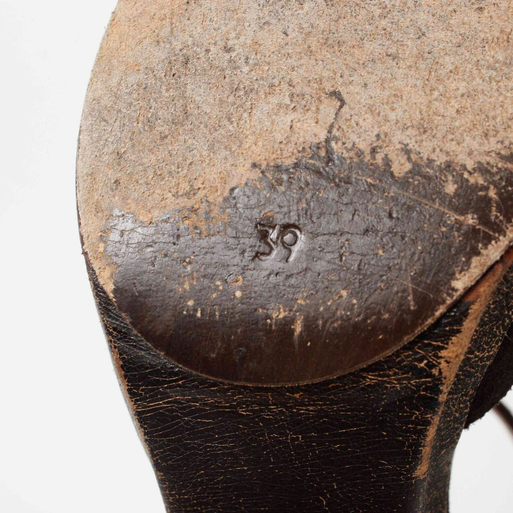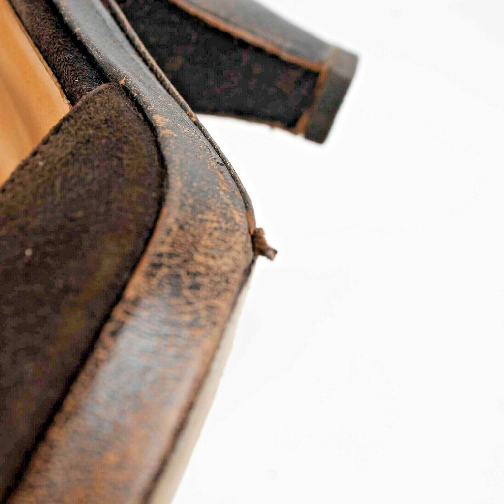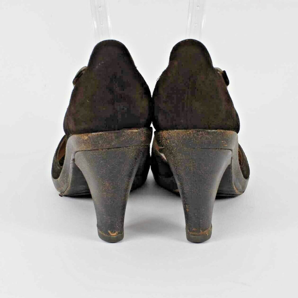 Coclico Sz 39 Brown Suede Leather Double T Strap 3.5" Heel Open Toe Shoe