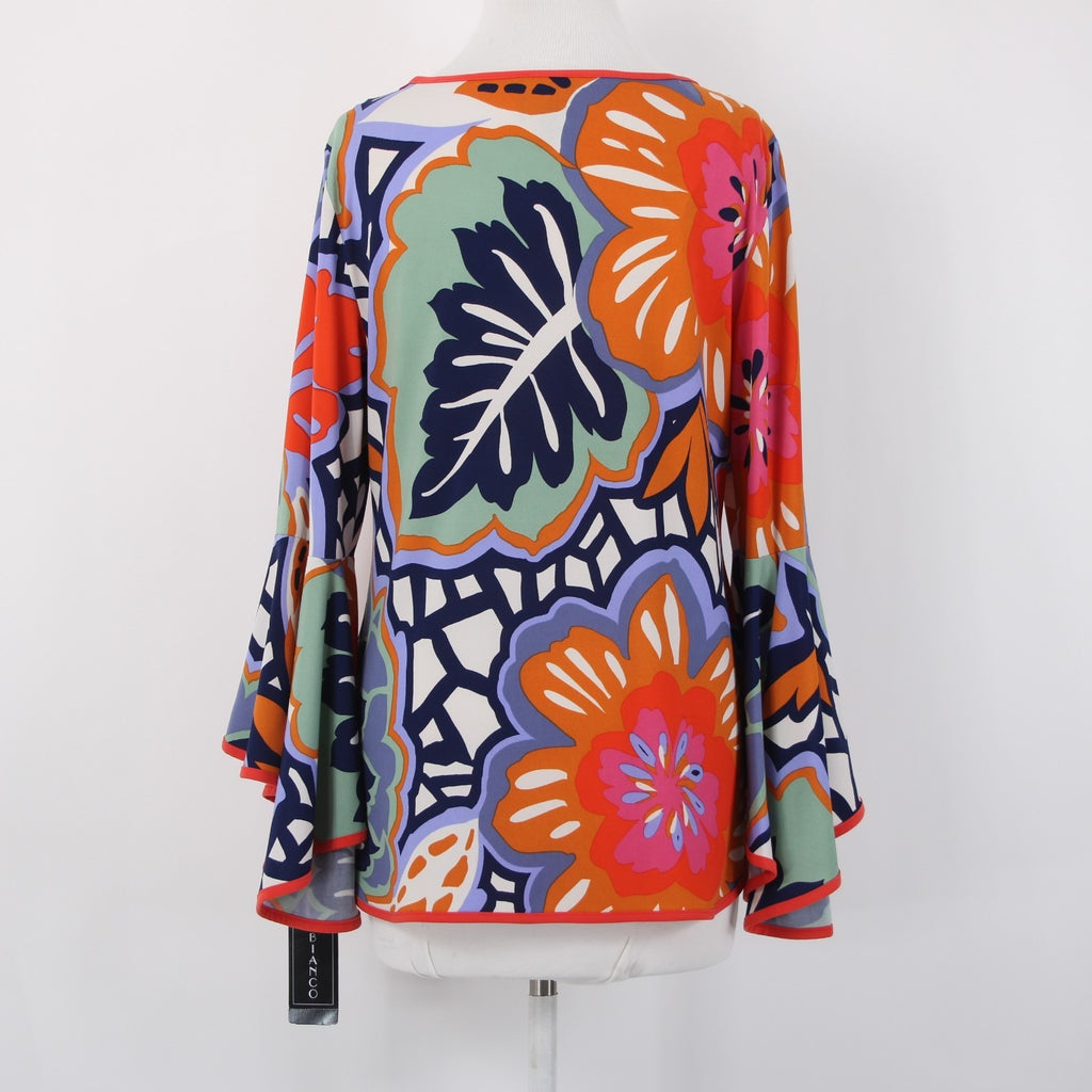 Coco Bianco Top NEW $79 Sz M Orange Multi Color Floral Polyester Spandex Top