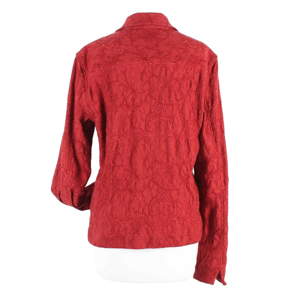 Coldwater Creek Sz L Red Paisley Textured Cuffed Button Up Cotton Blend Jacket