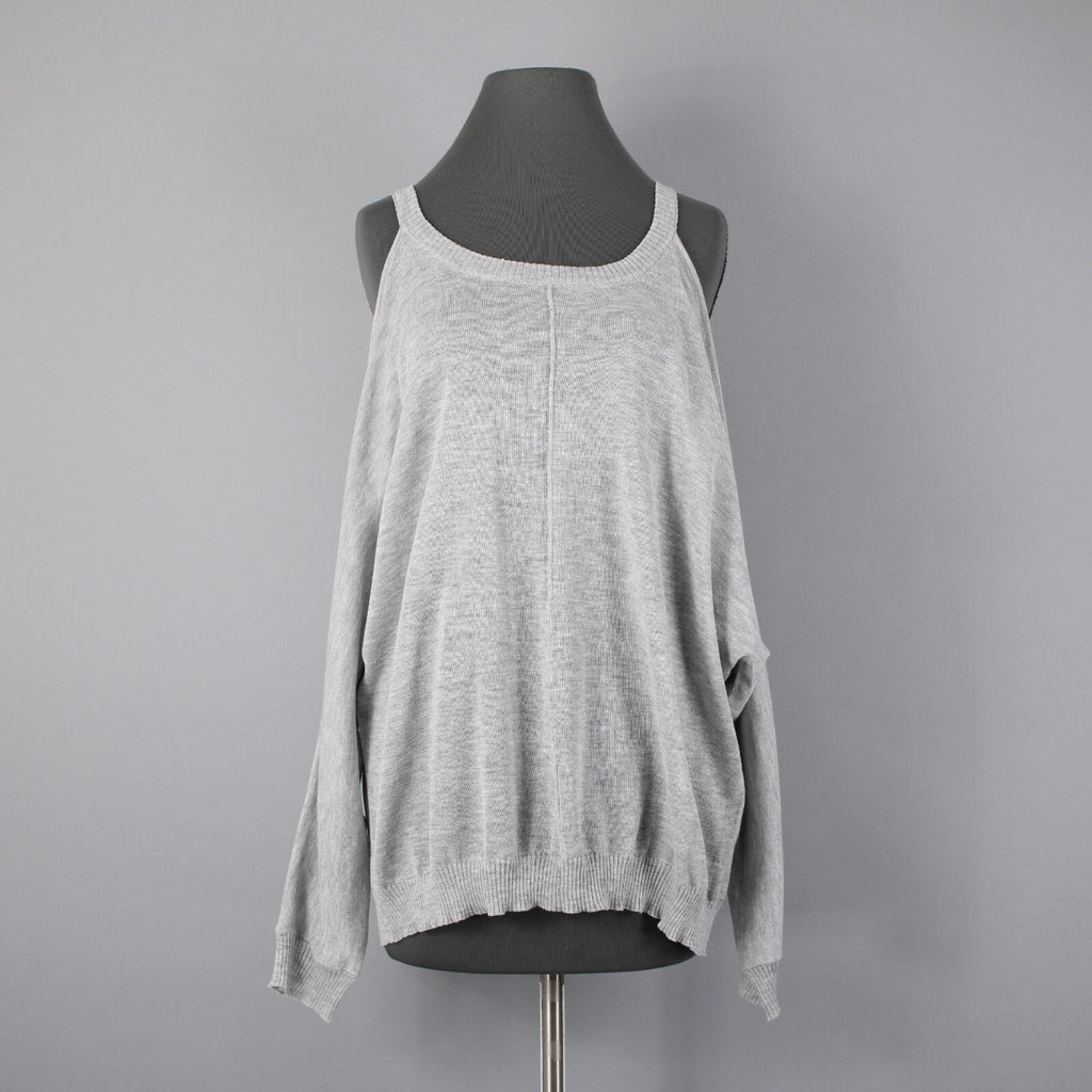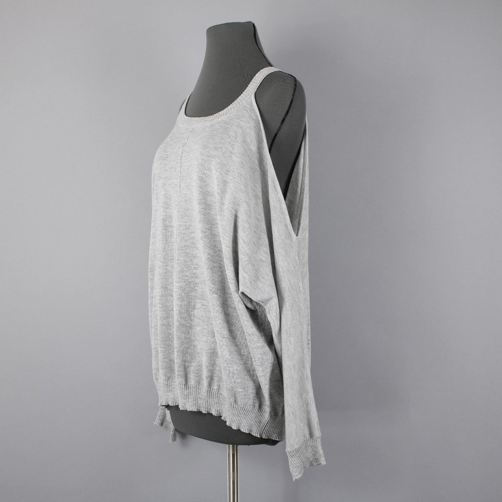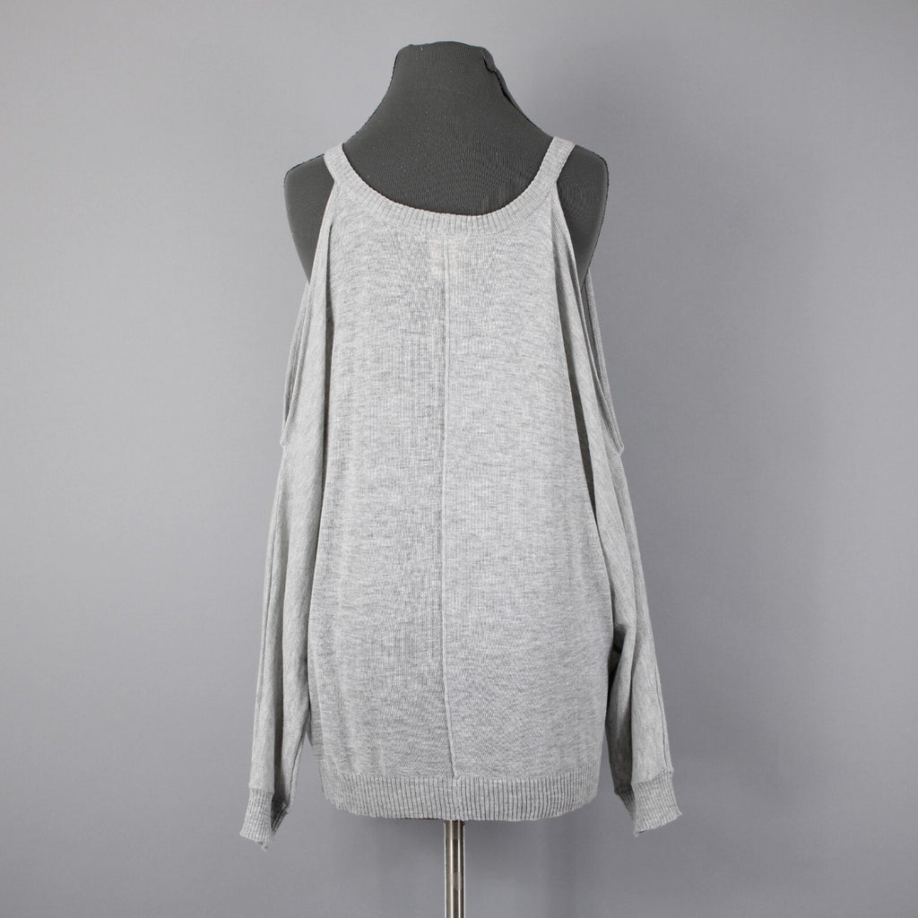 Cotton Emporium Sz M Gray Heathered Cold Shoulder Sleeve Acrylic Blend Sweater