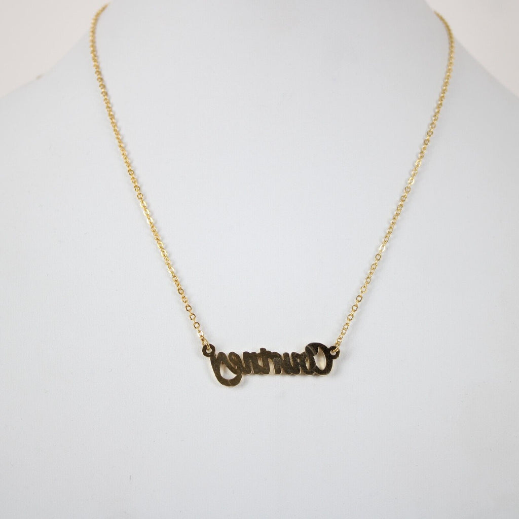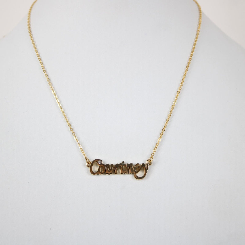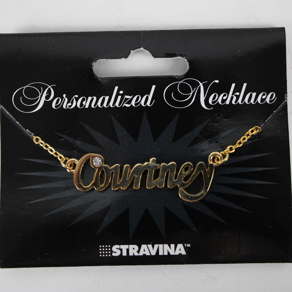 COURTNEY NEW Name Goldtone Rhinestone Accent 14.5"w 4.5" Multi Ring Ext Necklace
