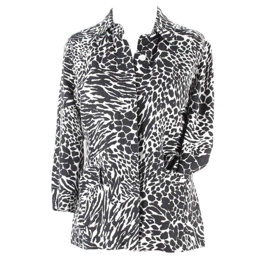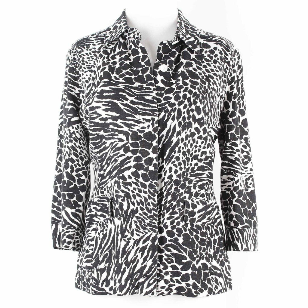 Covington Petite Sz SP Black White Button Up Linen Rayon Jacket