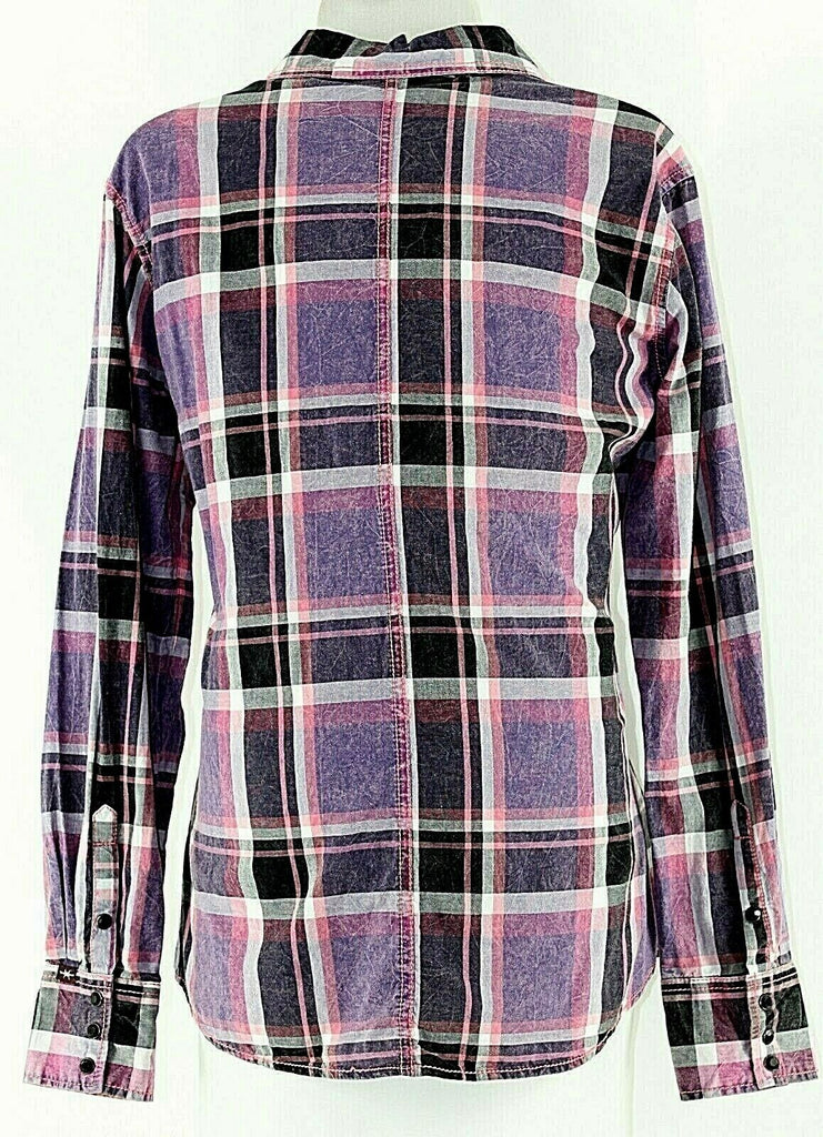Cowgirl Up CG Sz M Purple Pink Multi Plaid Black Faceted Snap 100% Cotton Top