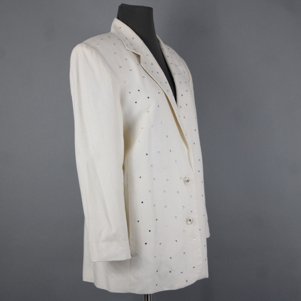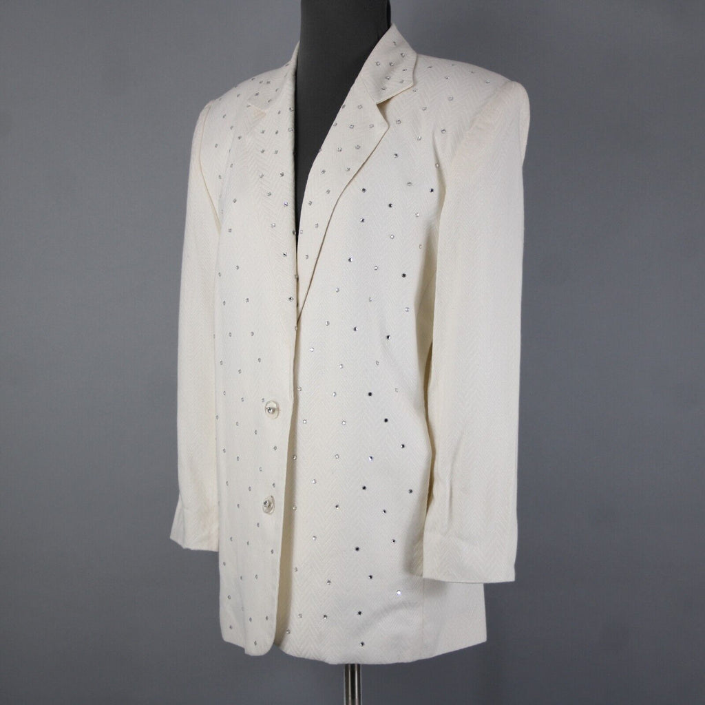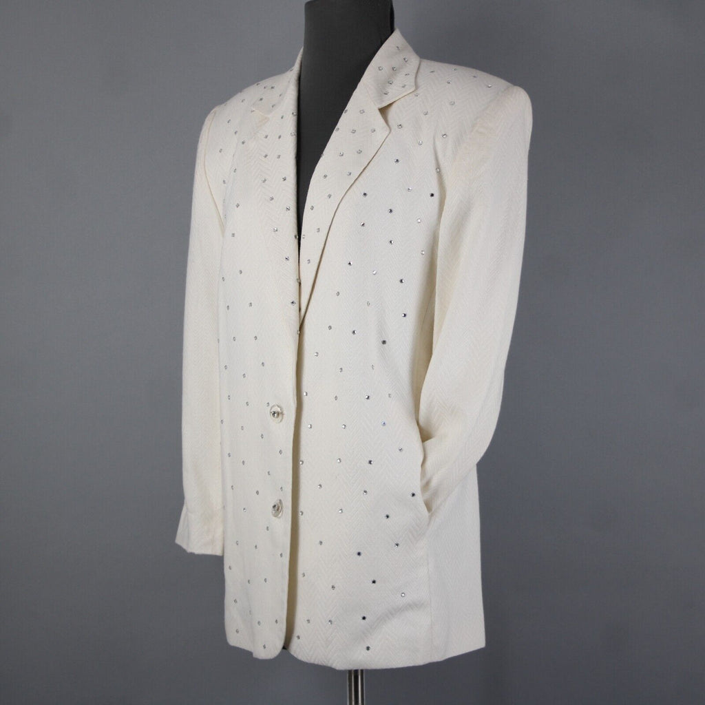 Criscione Sz S Cream White Rhinestones Collar Lined Rayon Polymide AS IS Jacket