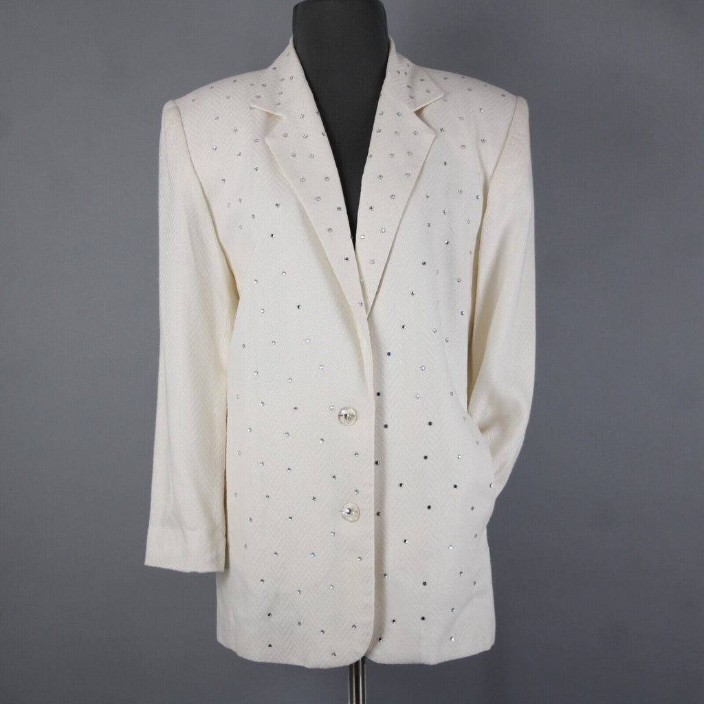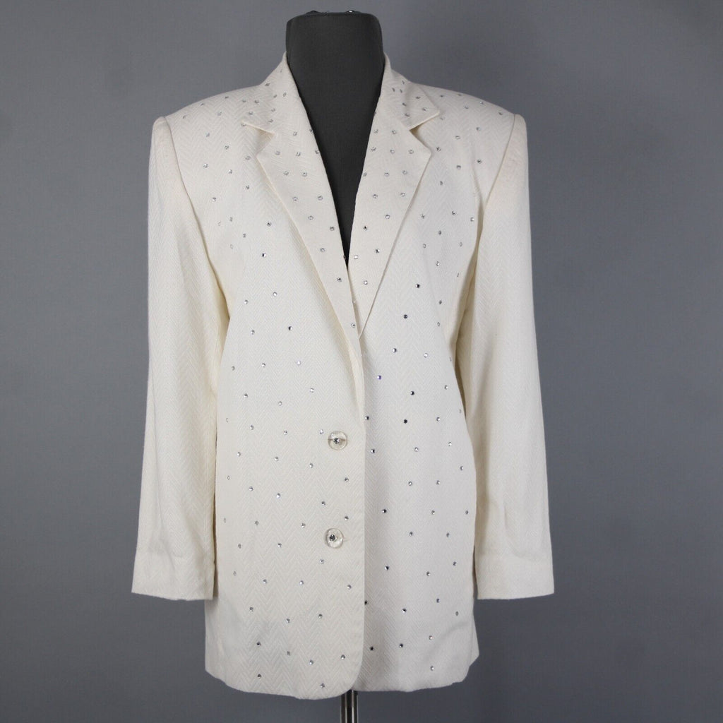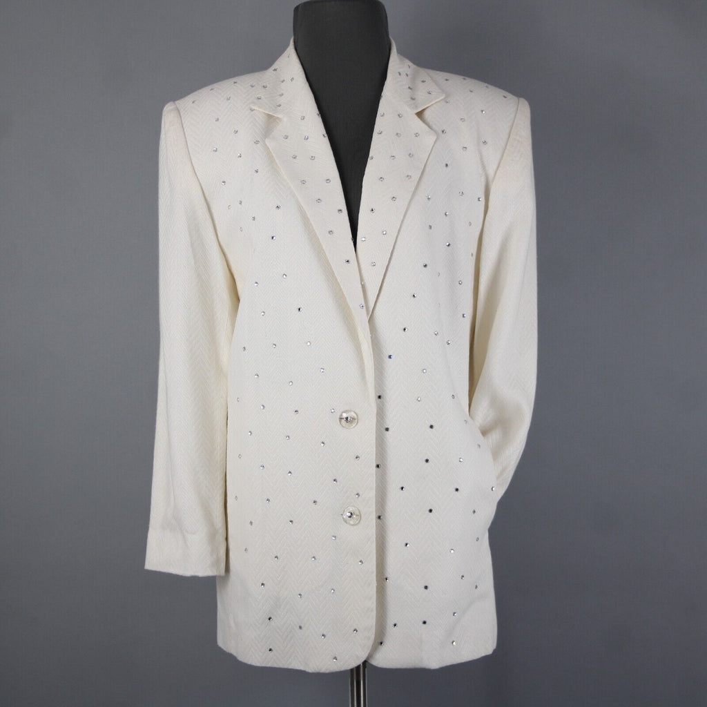 Criscione Sz S Cream White Rhinestones Collar Lined Rayon Polymide AS IS Jacket