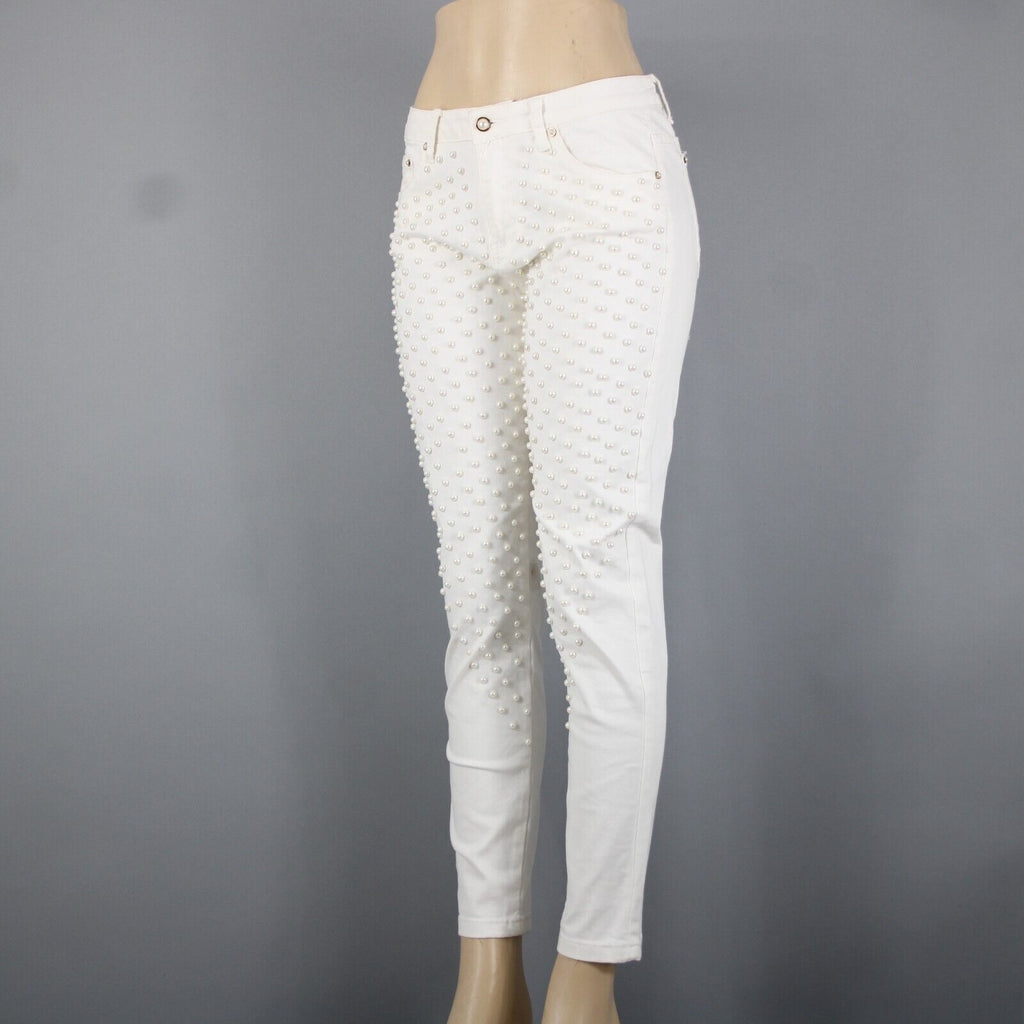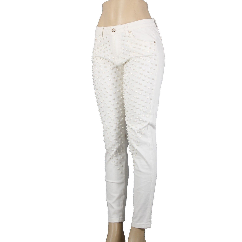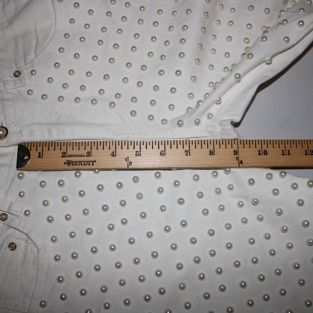 Cristina V Sz 6 x 28 White Faux Pearls Skinny Cotton Spandex AS IS Pant