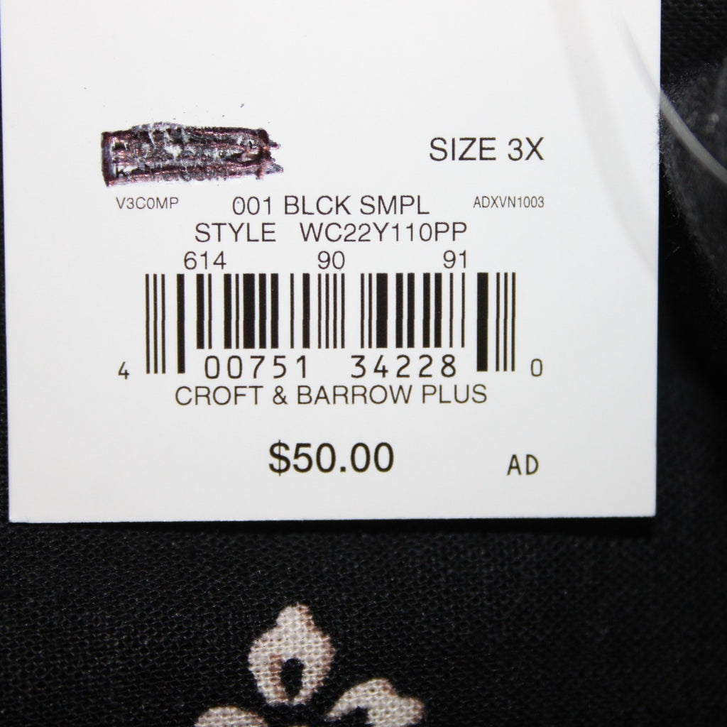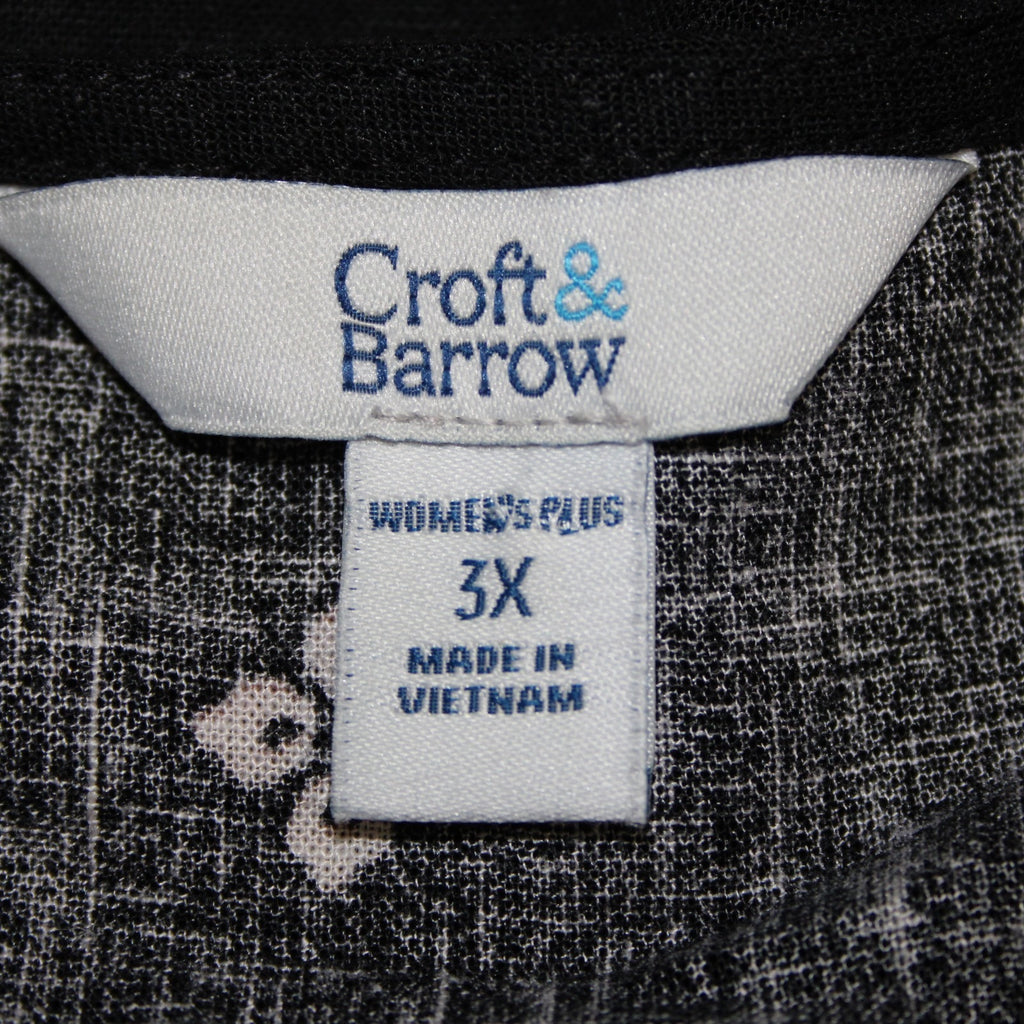 Croft Barrow Dress NEW $50 Sz 3X Black White Tan Unlined Linen Rayon Dress