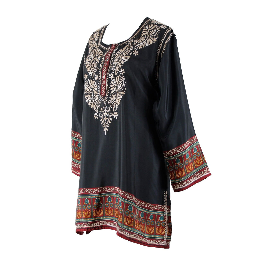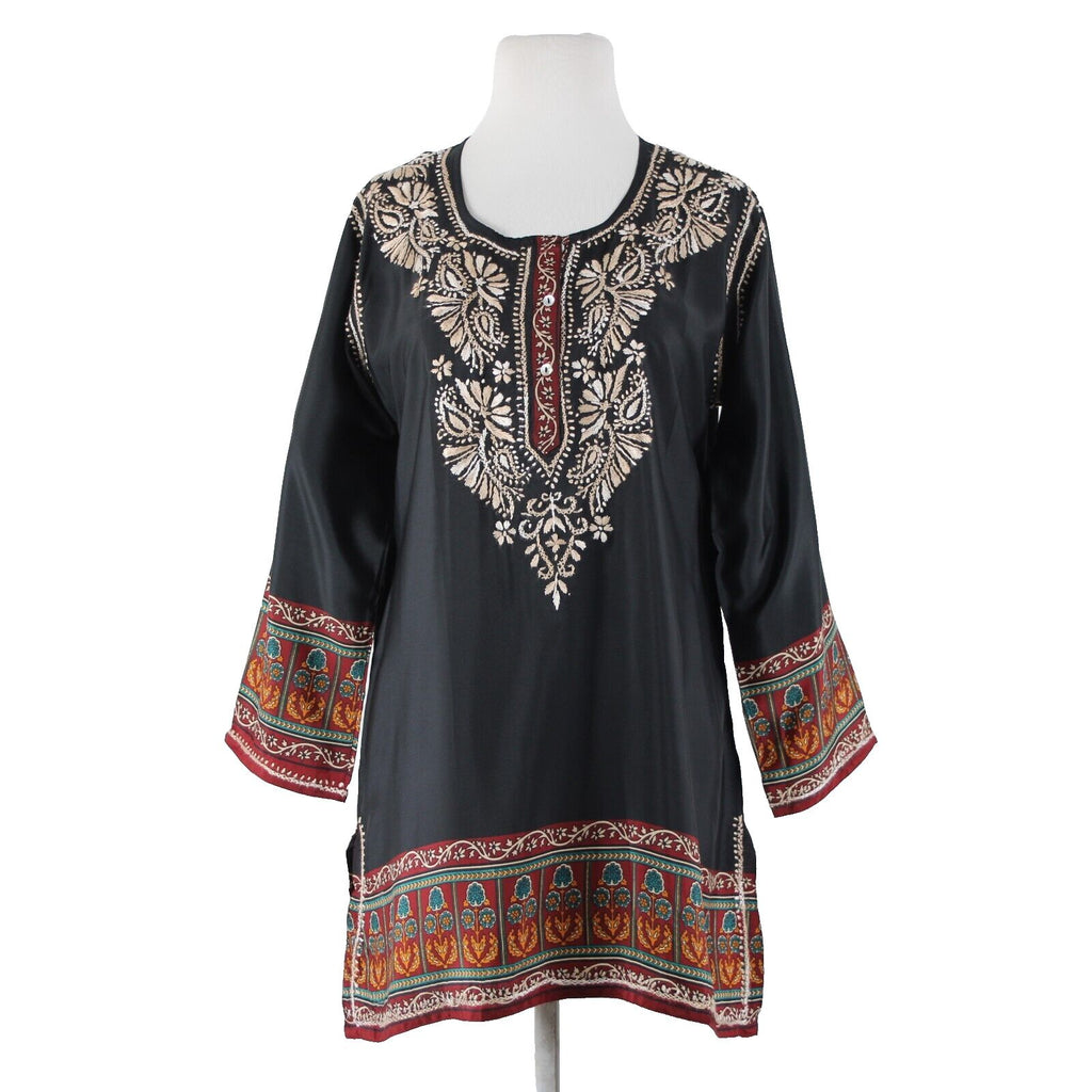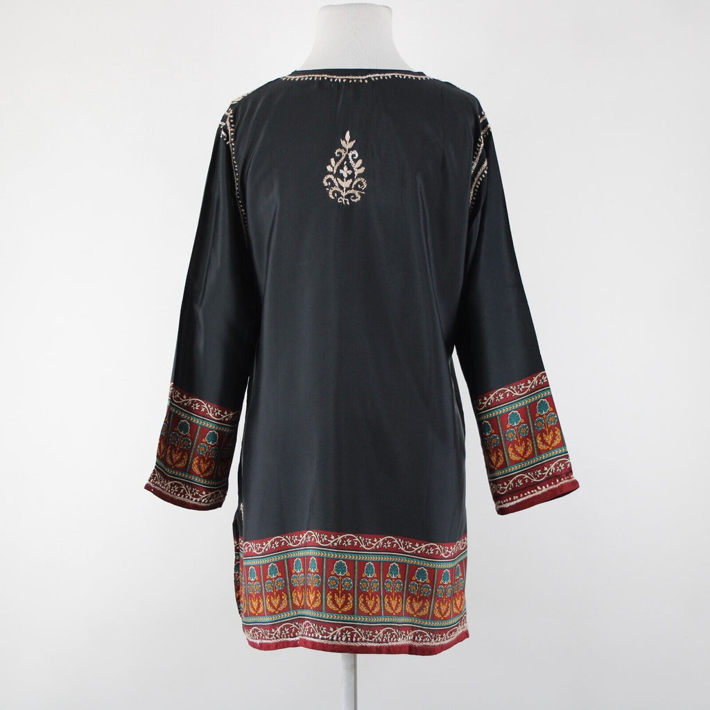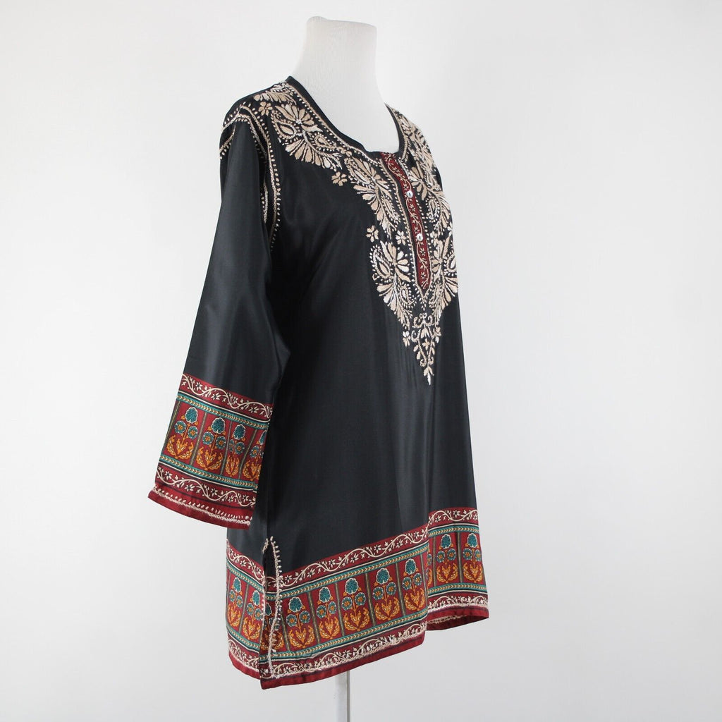 Cultural Elements NEW $89 Sz S Black Cream Burgundy Embroidered Poly Silk Top