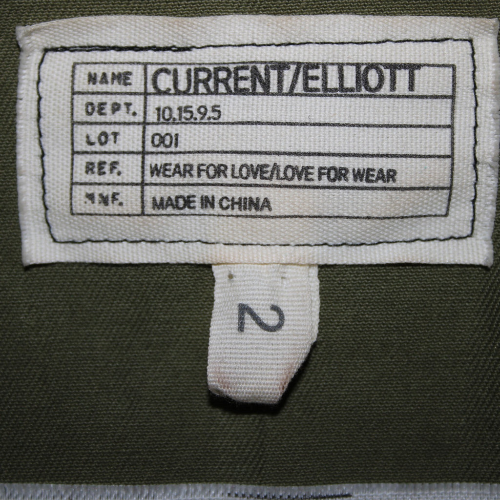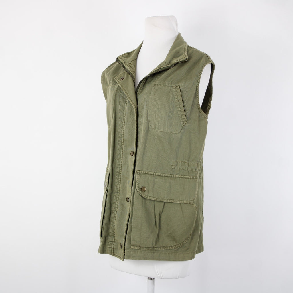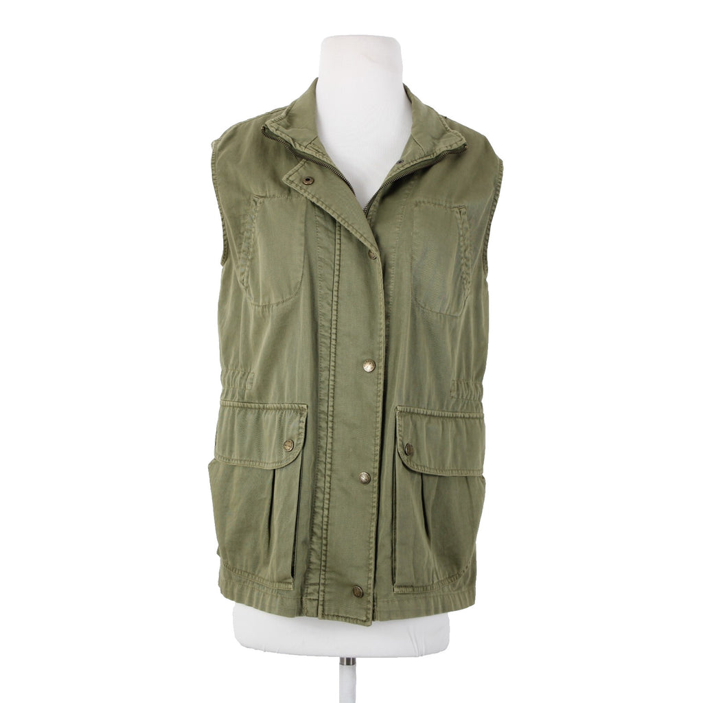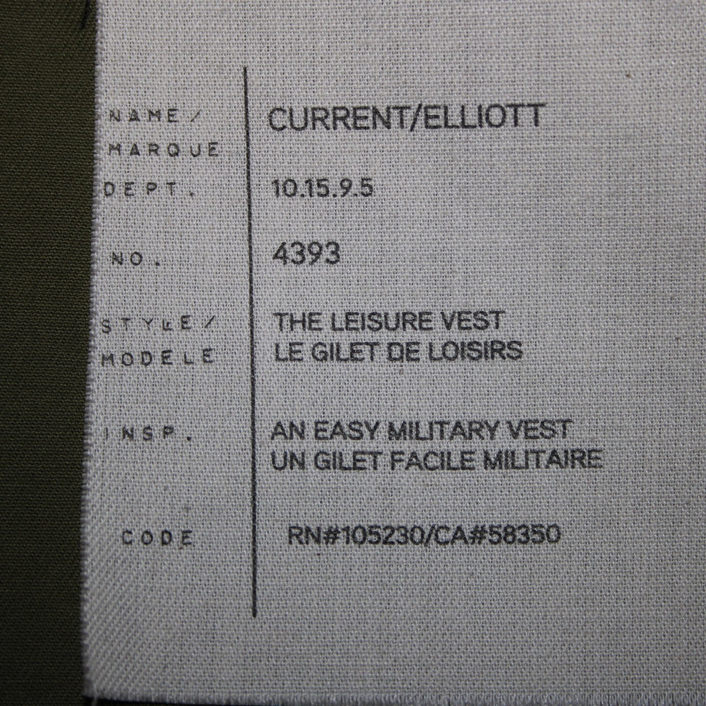 Current Elliott The Leisure Sz 2 Olive Green Pockets Collared 100% Cotton Vest