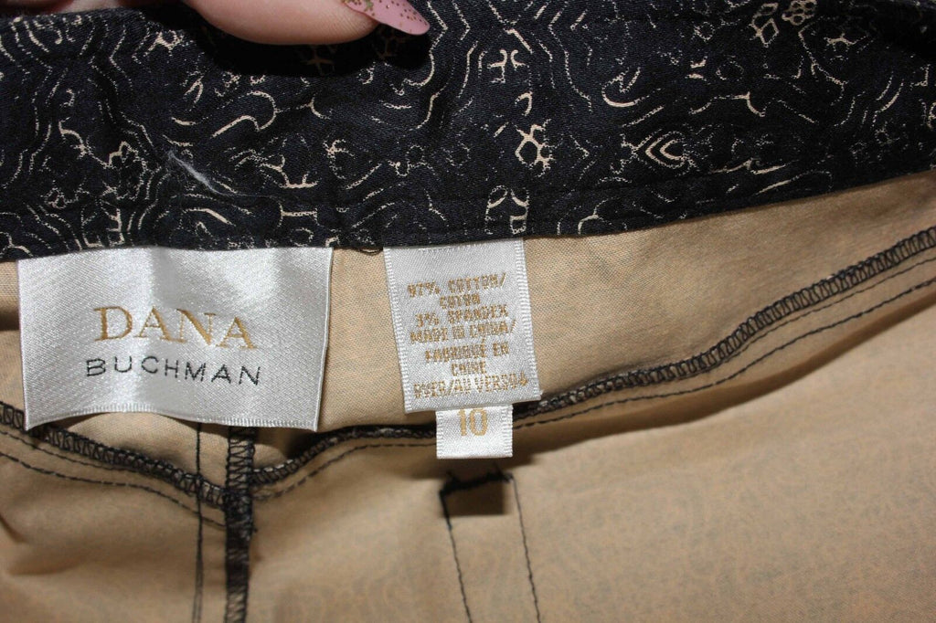 Dana Buchman Sz 10 x 29 Navy Tan Print Cotton Blend 5 Pocket Pant