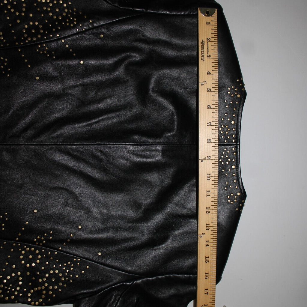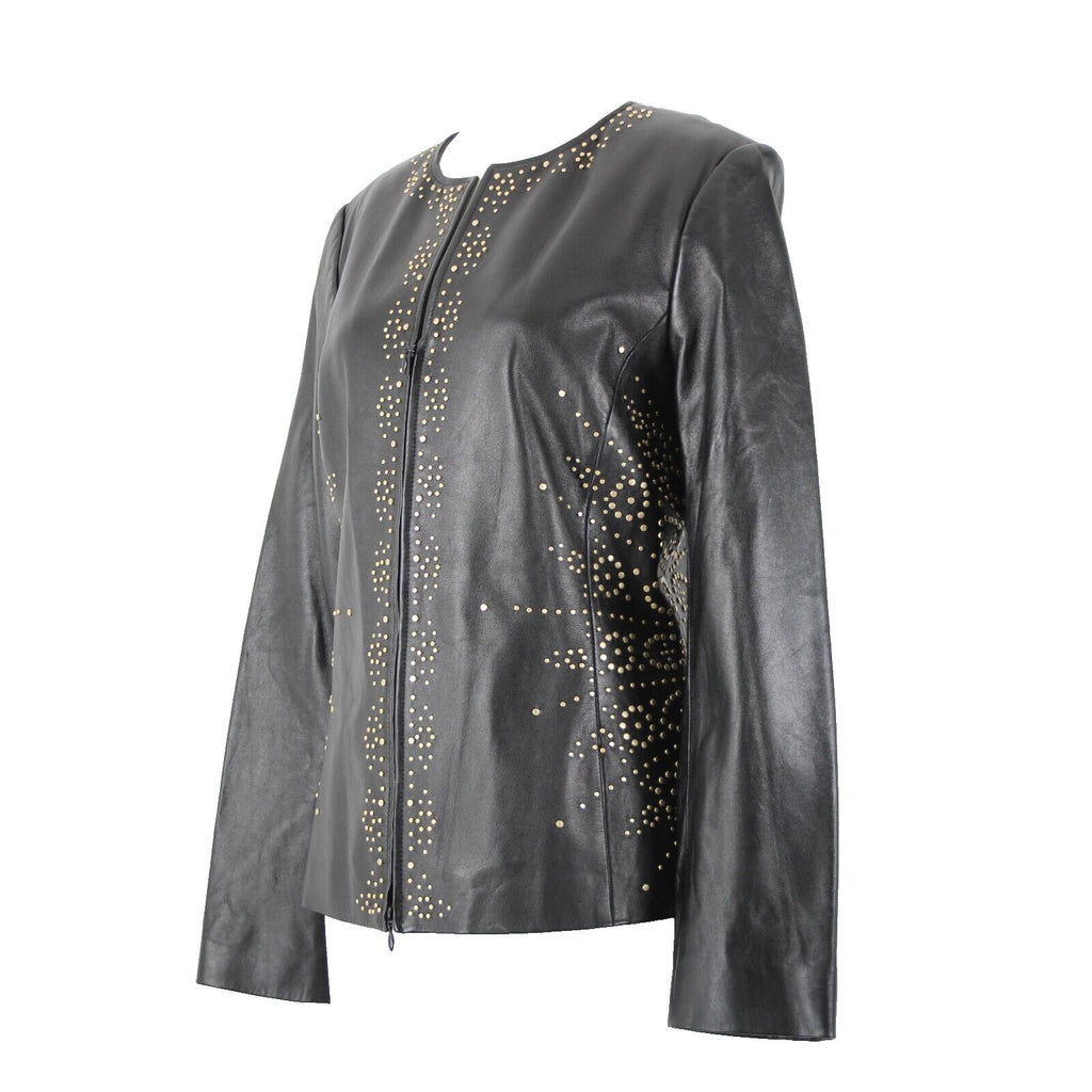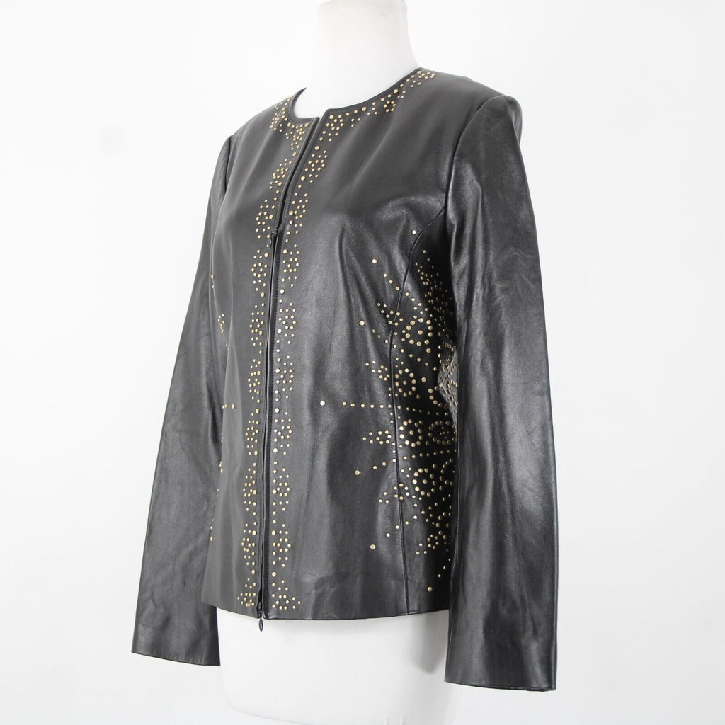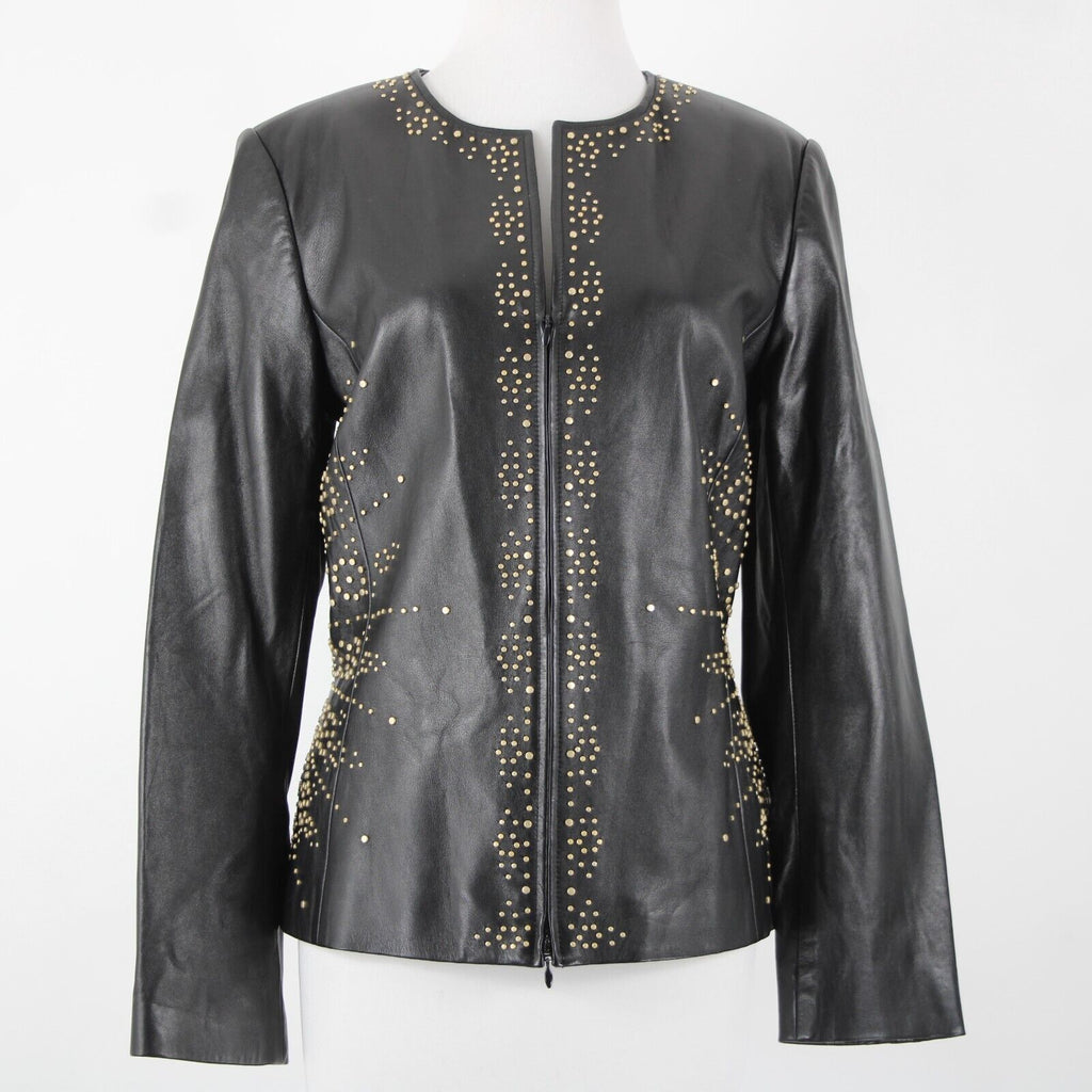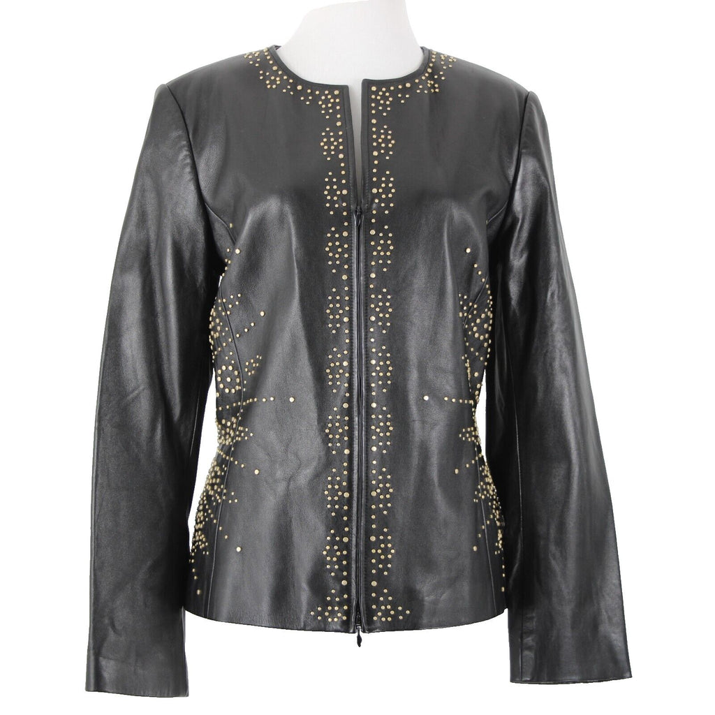 Dana Buchman Sz 12 Black Gold Stud Zipper 100% Leather Acetate Lined Jacket
