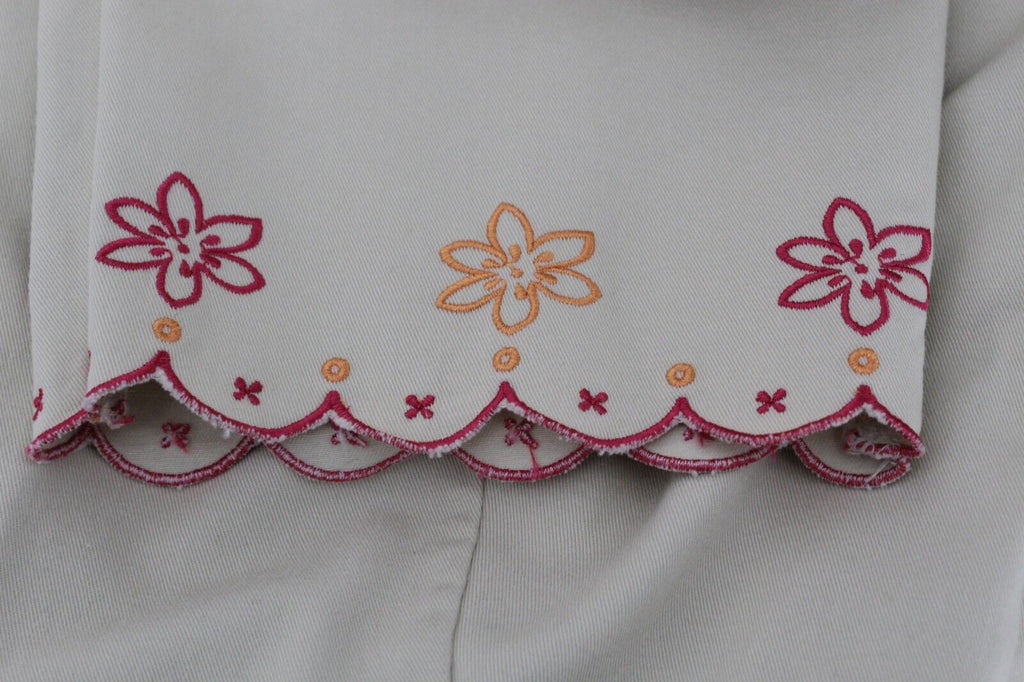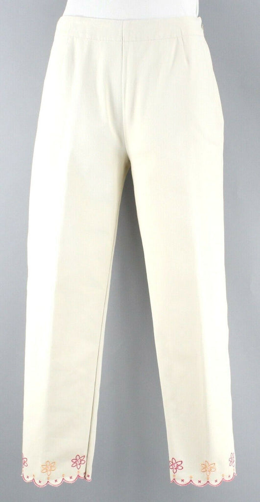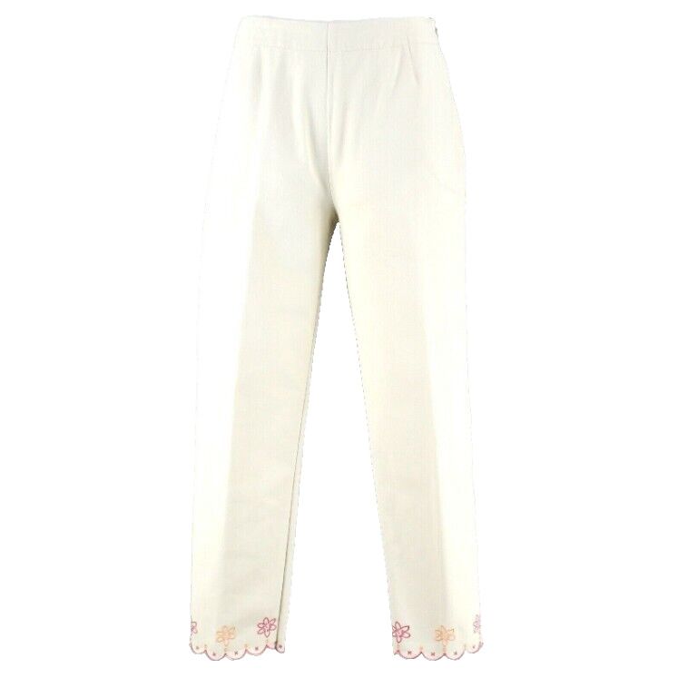 David Brooks Sz 10 x 26 Cream Pink Orange Embr 100% Cotton Unlined Crop Pant