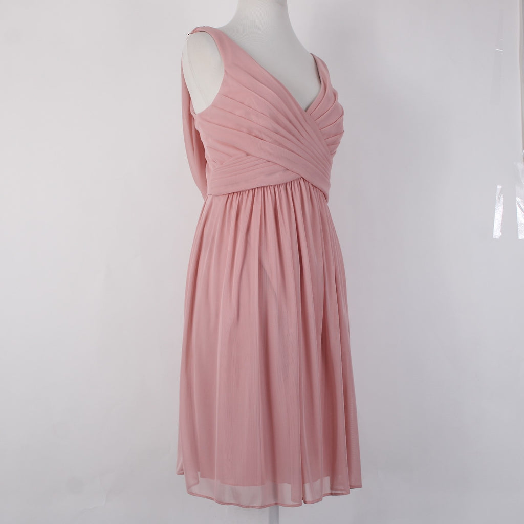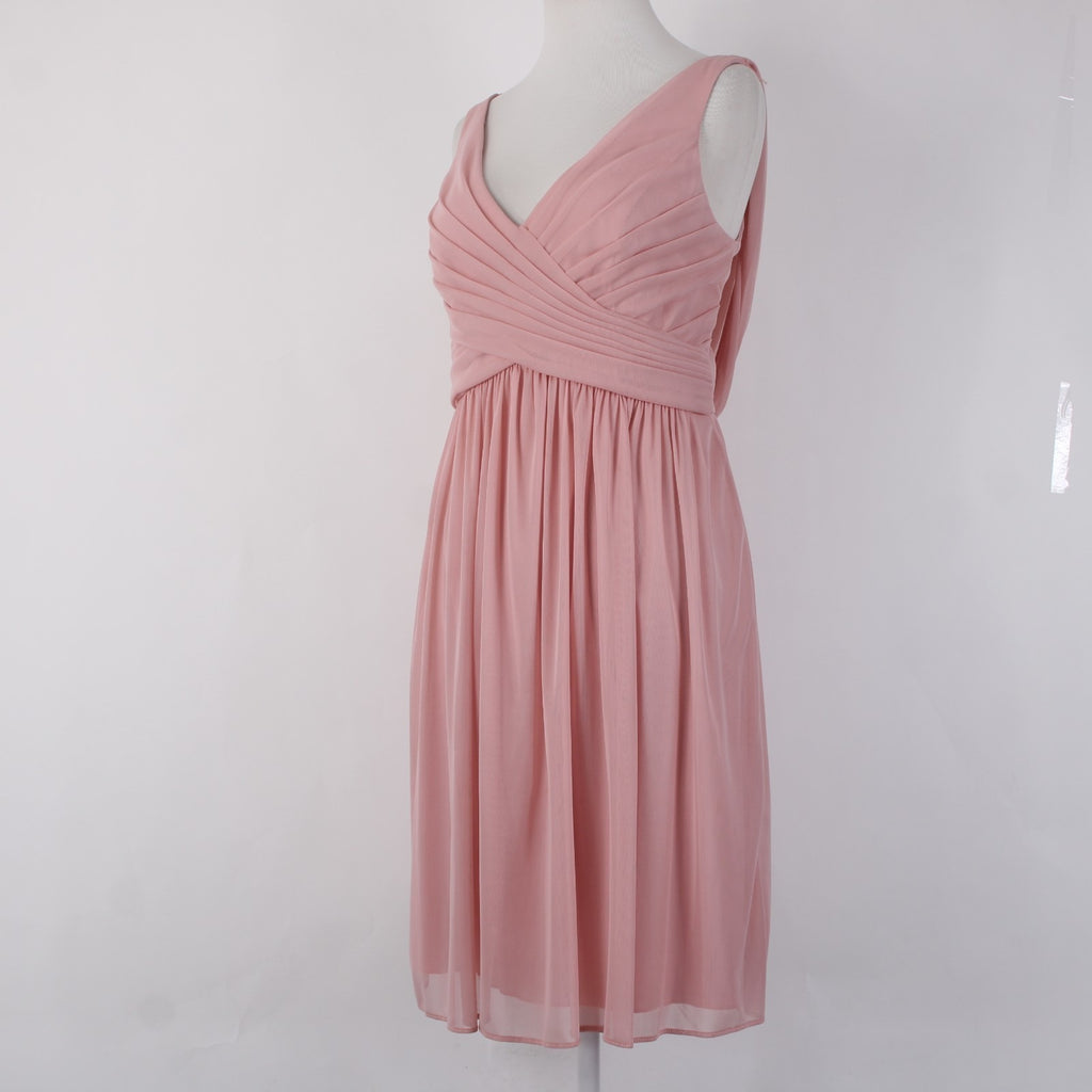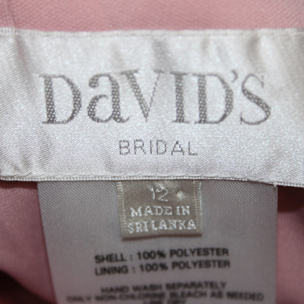 Davids Bridal Dress Sz 12 Pink Lined Scoop Back Criss Cross Front 100%Poly Dress