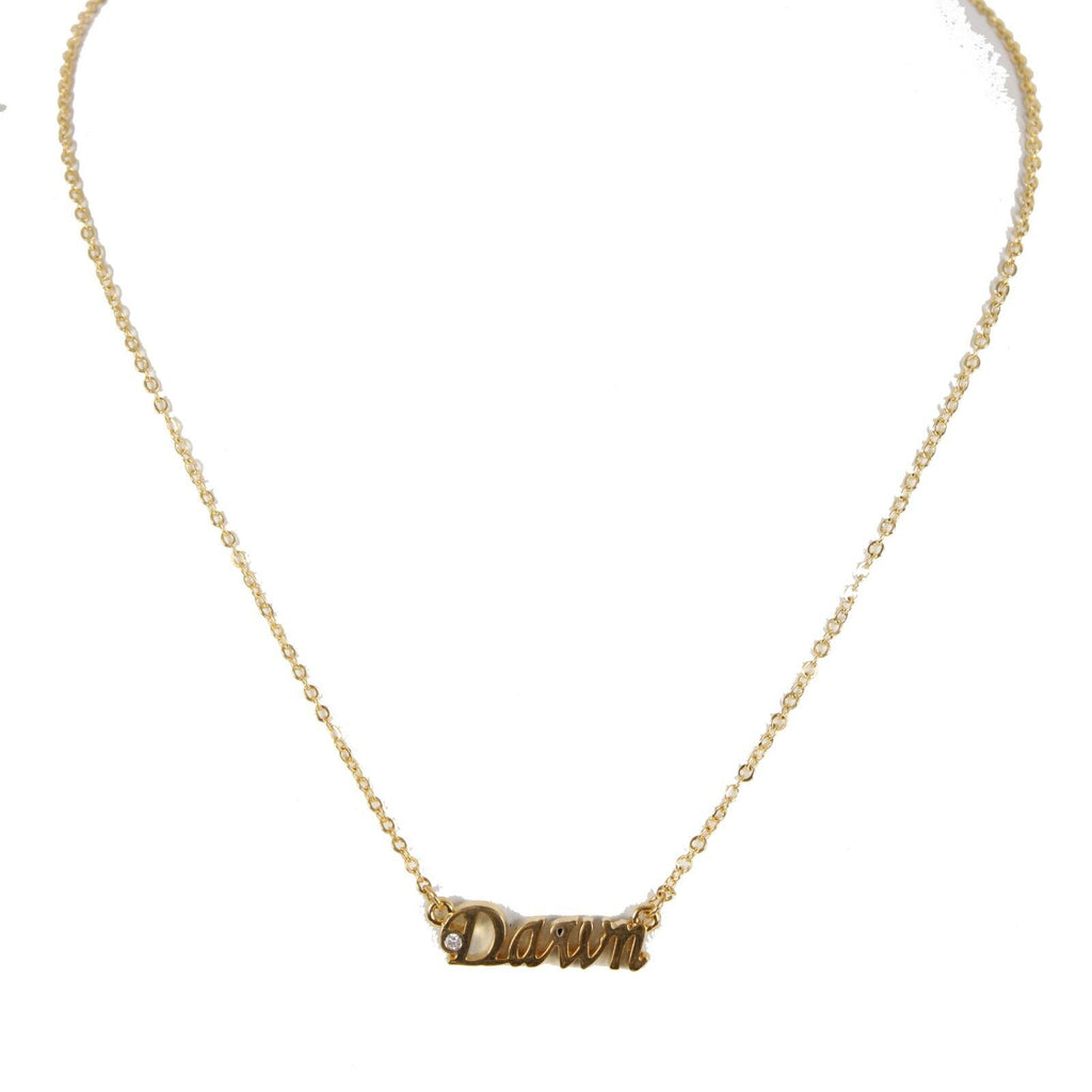 DAWN NEW Name Goldtone Rhinestone Accent 18" w 1.5" Ring Ext Necklace