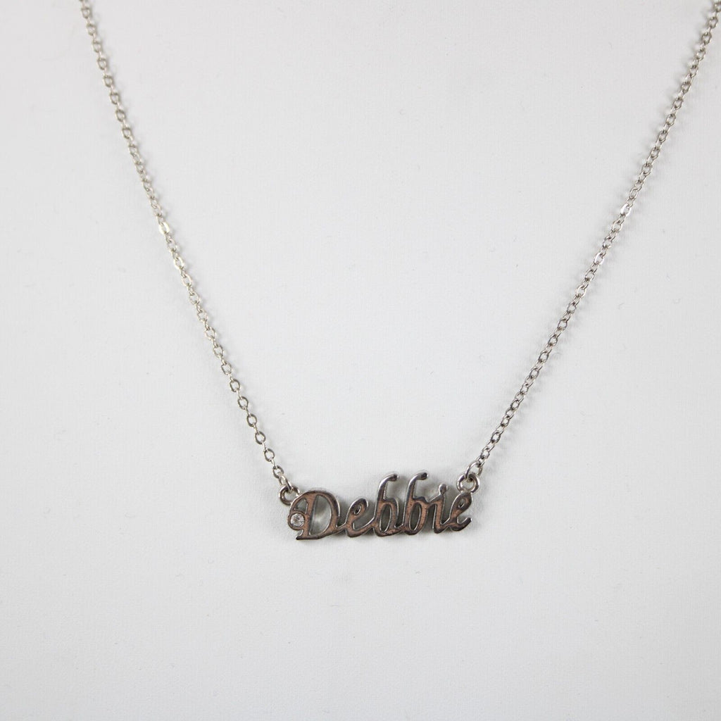 DEBBIE Name Silvertone Rhinestone 14.5" w 4.5" Multi Ring Ext Necklace