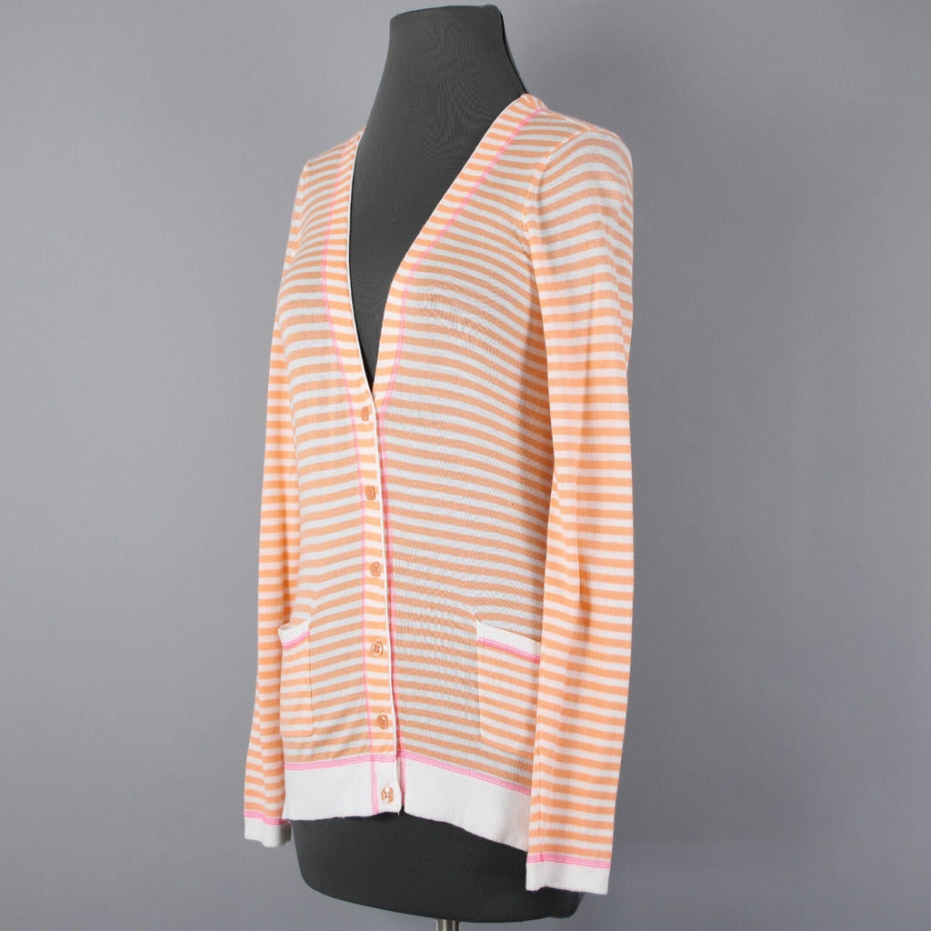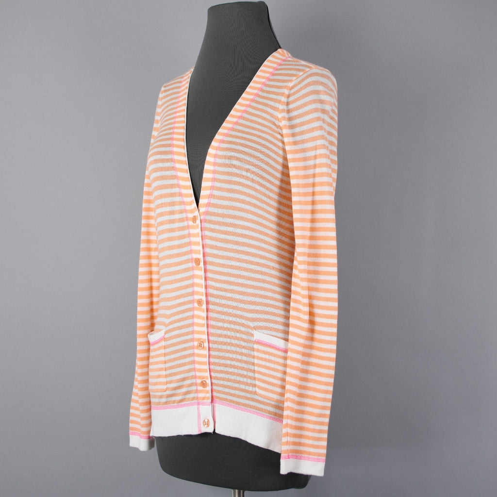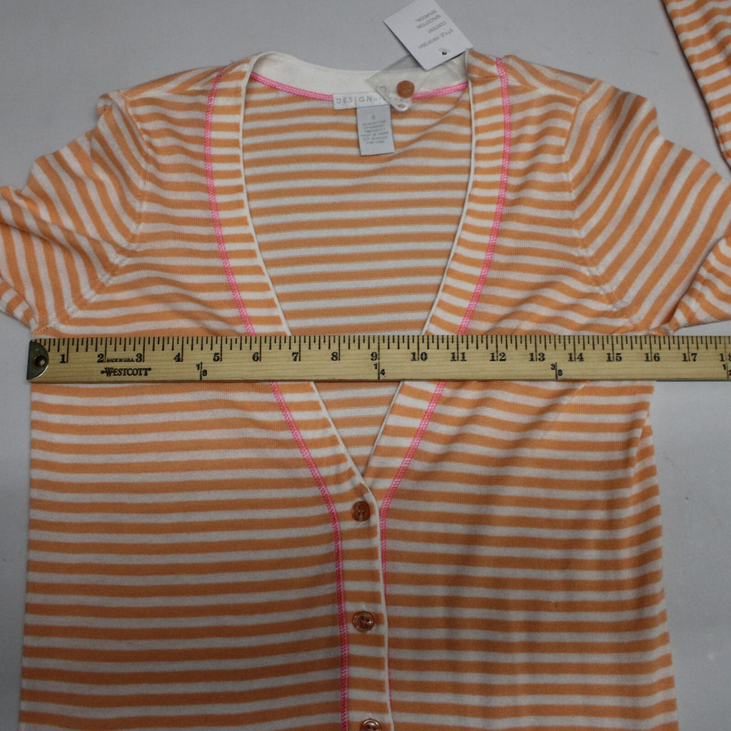 Design History NEW Sz S Orange Pink Cream Pockets Cotton Modal Cardigan Sweater