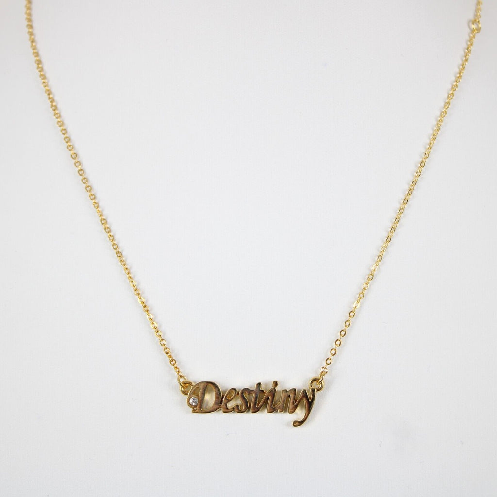 DESTINY NEW Name Goldtone Rhinestone Accent 14.5" w 4.5" Multi Ring Ext Necklace